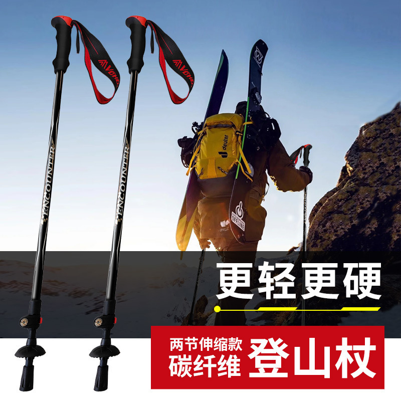 탄소 섬유 초경량 트레킹 스틱 하이킹 2 섹션 텔레스코픽 낙하 방지 외부 잠금 버클 전문 야외 지팡이 공장