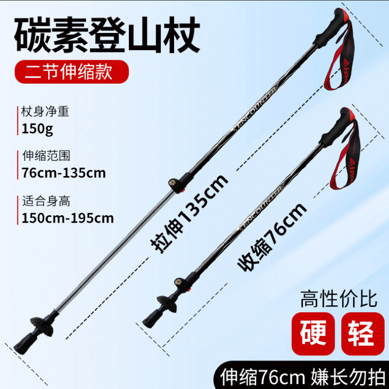 탄소 섬유 초경량 트레킹 스틱 하이킹 2 섹션 텔레스코픽 낙하 방지 외부 잠금 버클 전문 야외 지팡이 공장스토어 가기