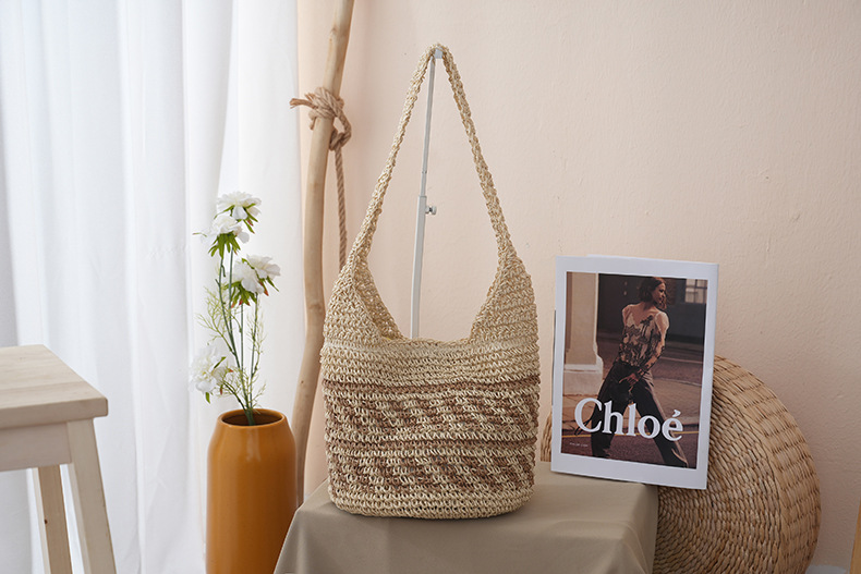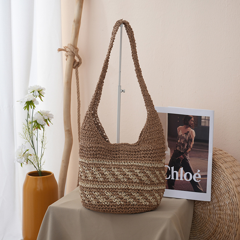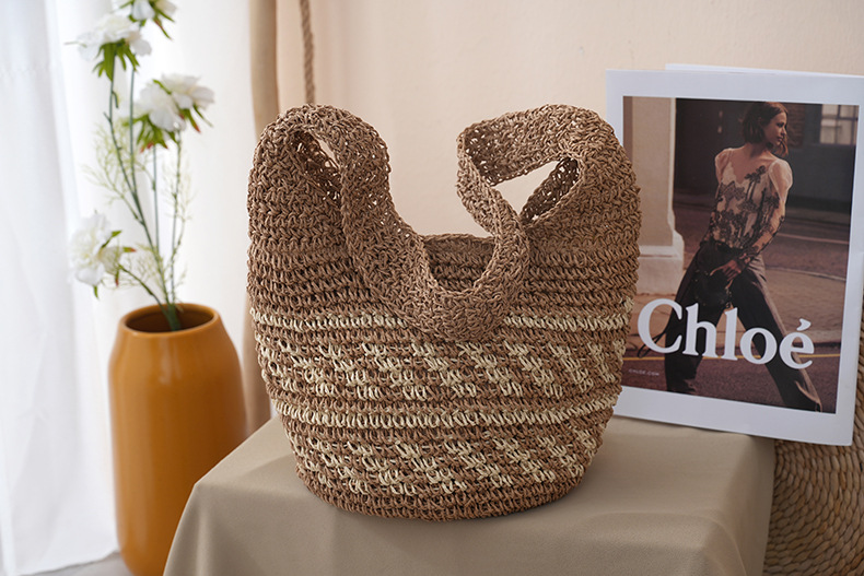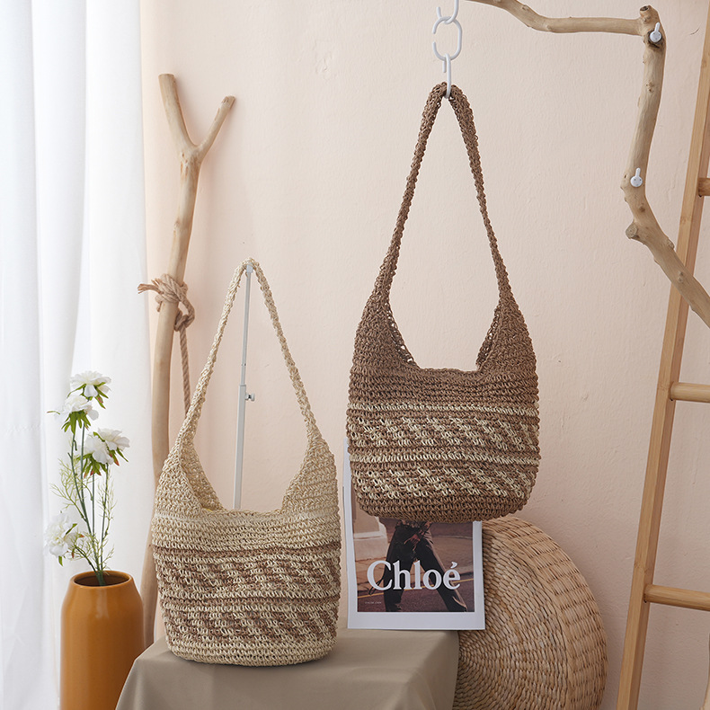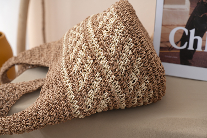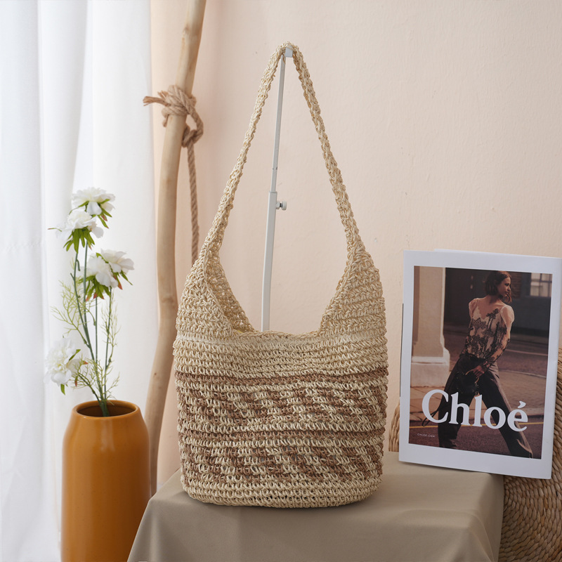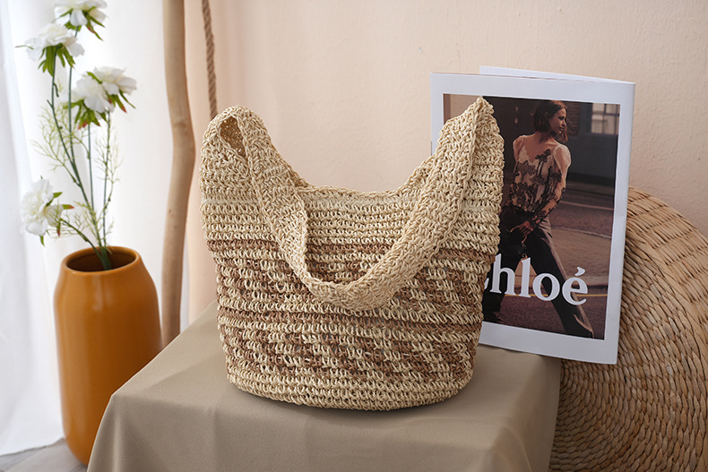 새로운 스트라이프 밀짚 가방, 수제 핸드메이드 가방, 숄더백, 토트백, 대용량 휴가용 여성 비치백스토어 가기