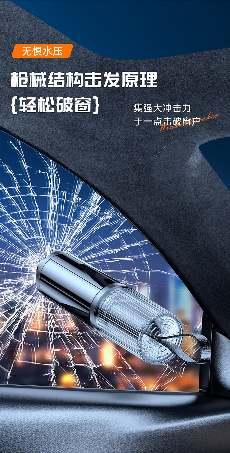 【产品特点】:可以破窗也可割断安全带,产品小巧便携带