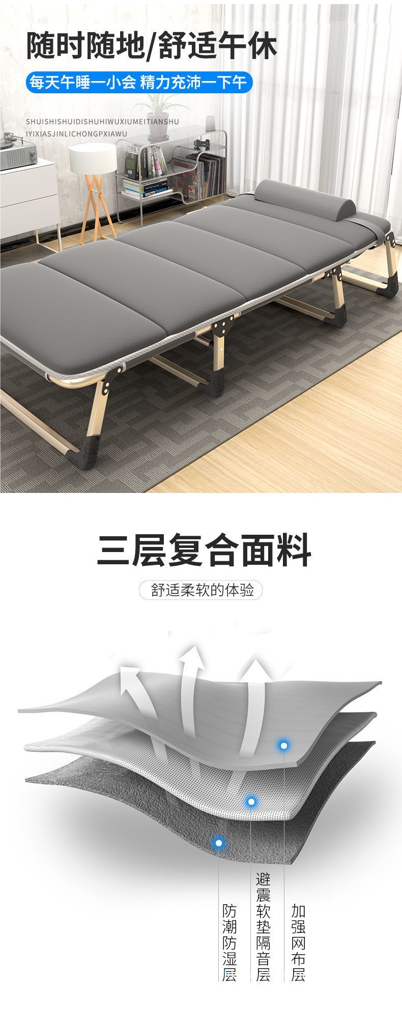접이식 침대 가정용 간단한 싱글 낮잠 침대 사무실 성인 낮잠 침대 캠프 침대 휴대용 다기능 안락 의자스토어 가기