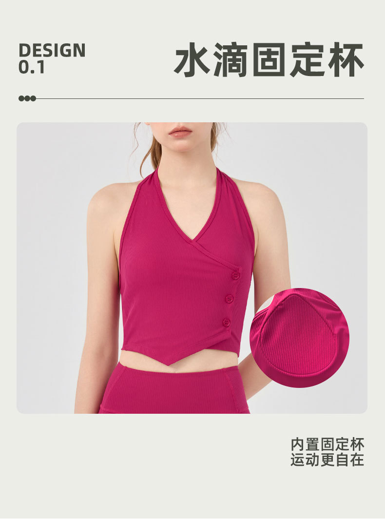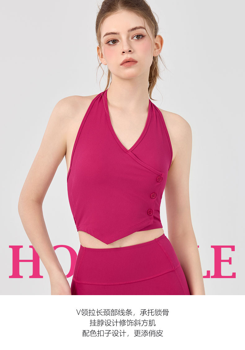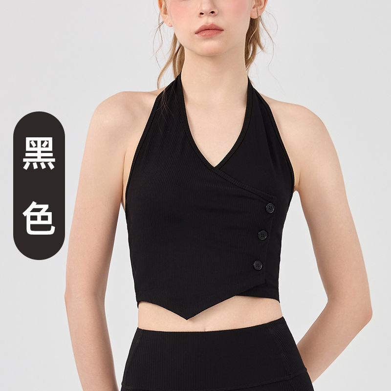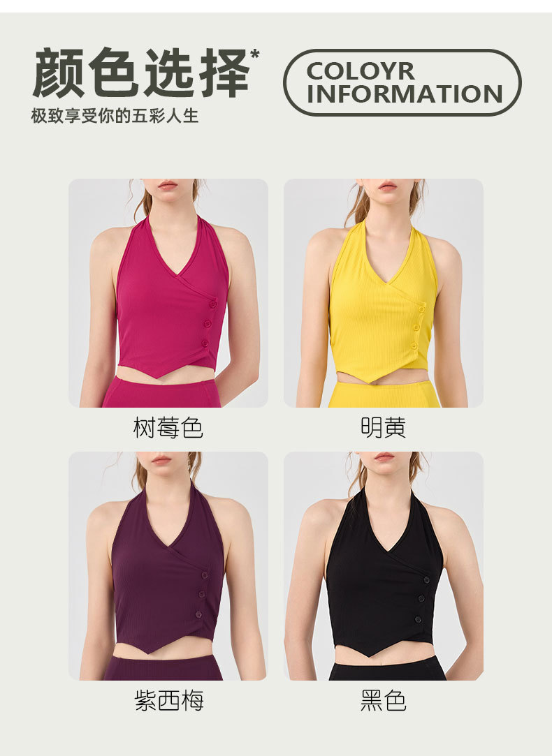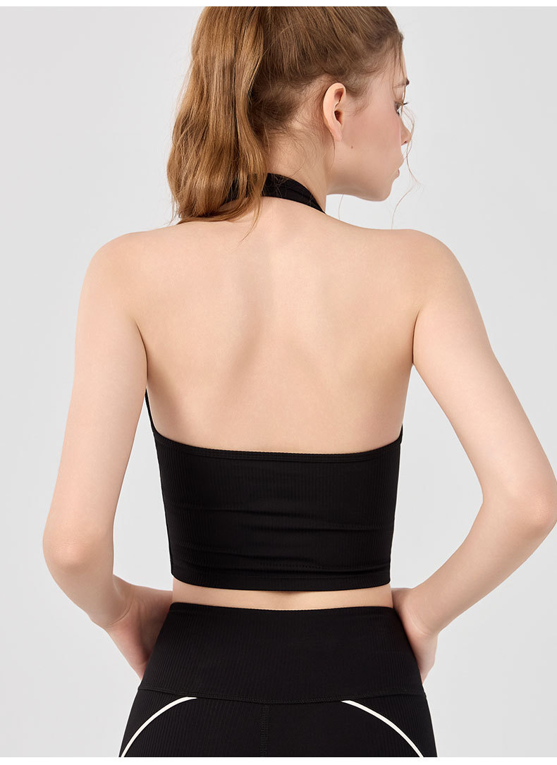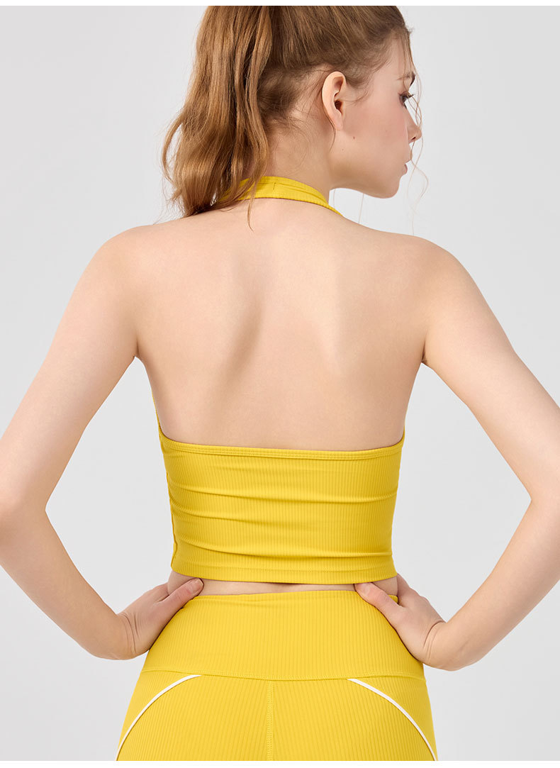 가슴 패드가 있는 세련된 오프 숄더 홀터넥 요가 조끼, 충격 방지 스포츠 속옷, 여름 아우터웨어, 여성용 피트니스 요가 의류 상의스토어 가기