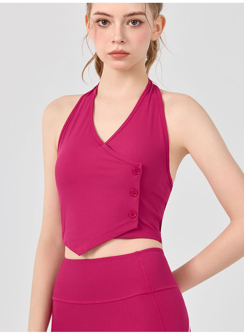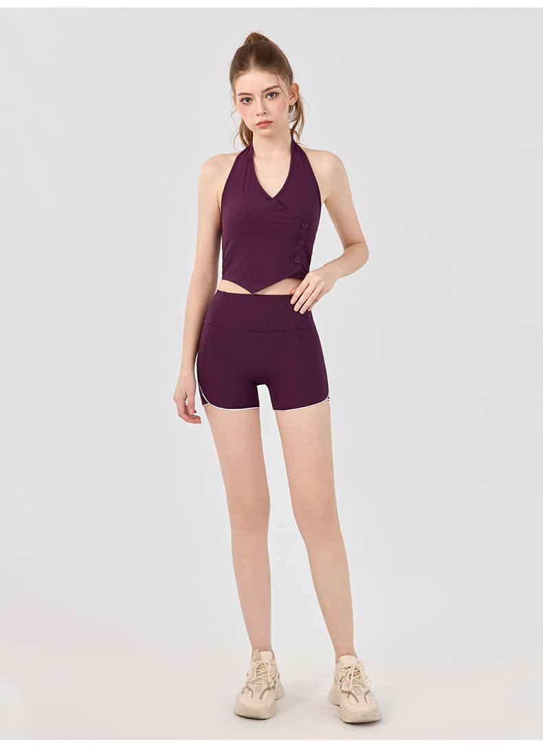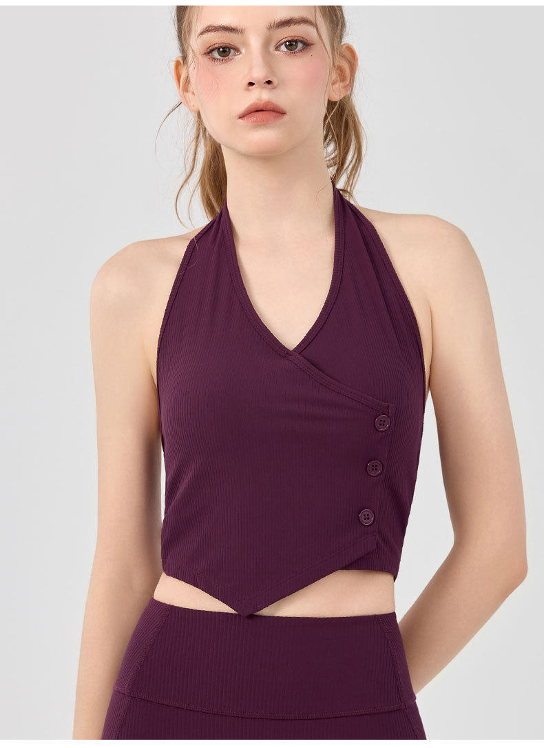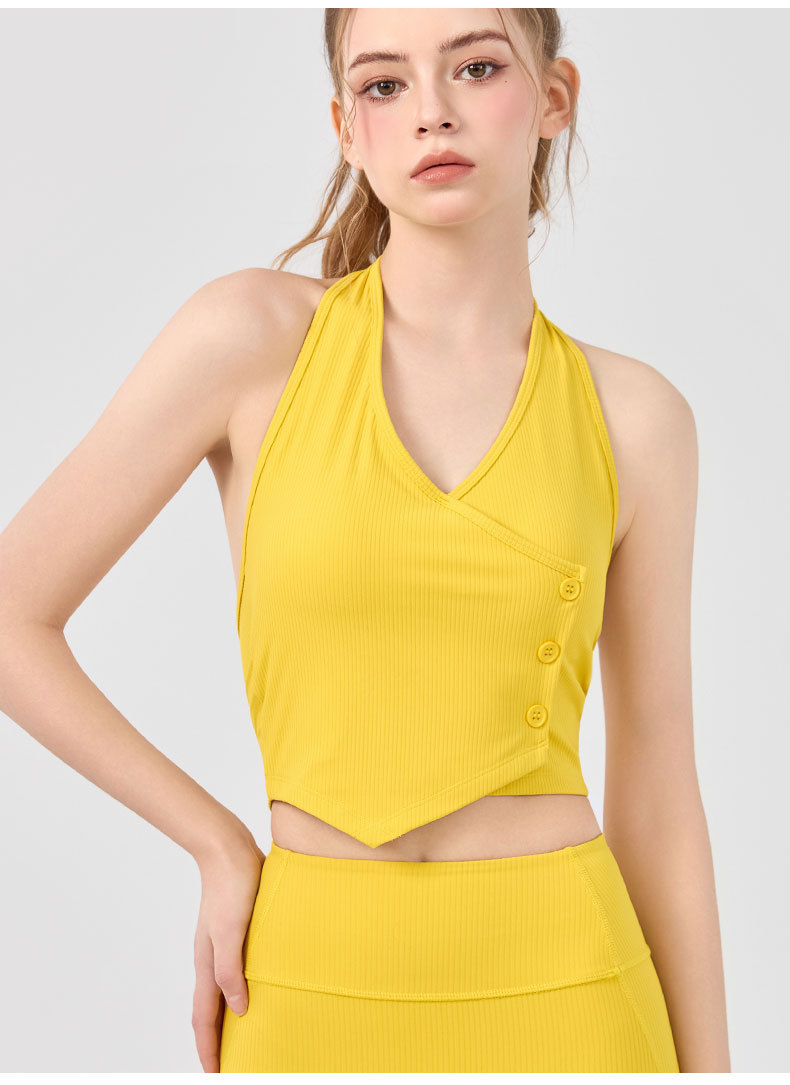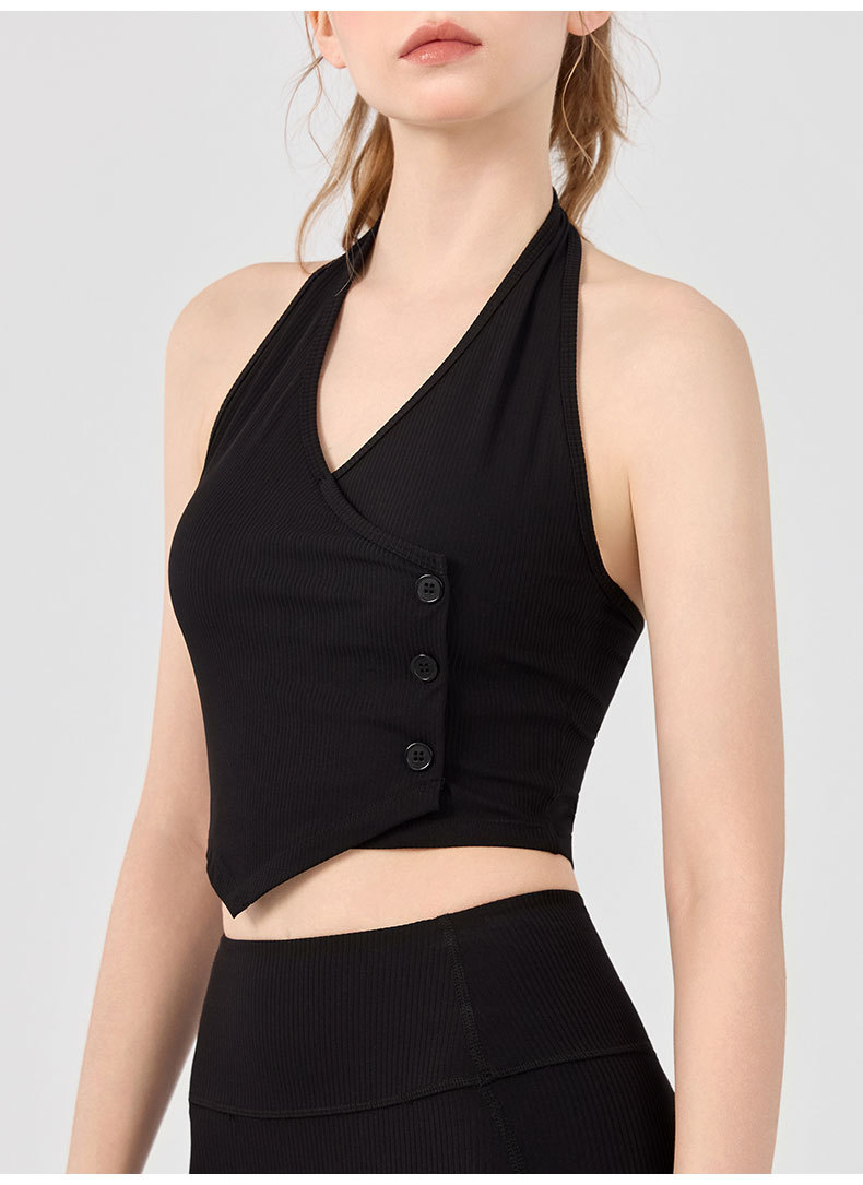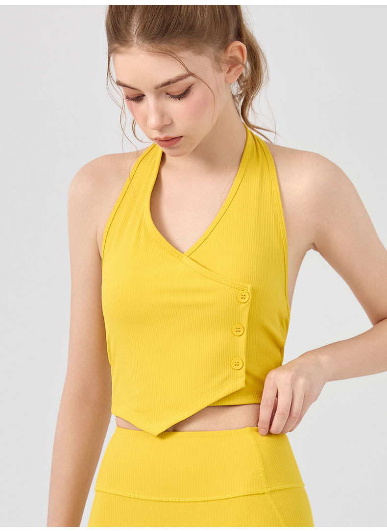 가슴 패드가 있는 세련된 오프 숄더 홀터넥 요가 조끼, 충격 방지 스포츠 속옷, 여름 아우터웨어, 여성용 피트니스 요가 의류 상의스토어 가기