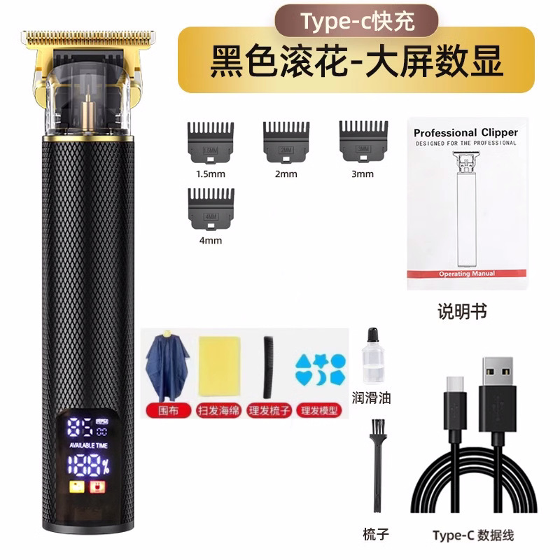 • LCD 디지털 전원 디스플레이 블랙 [티타늄 칼날] 사은품 패키지 (천 + 스펀지 + 빗 + 모델)