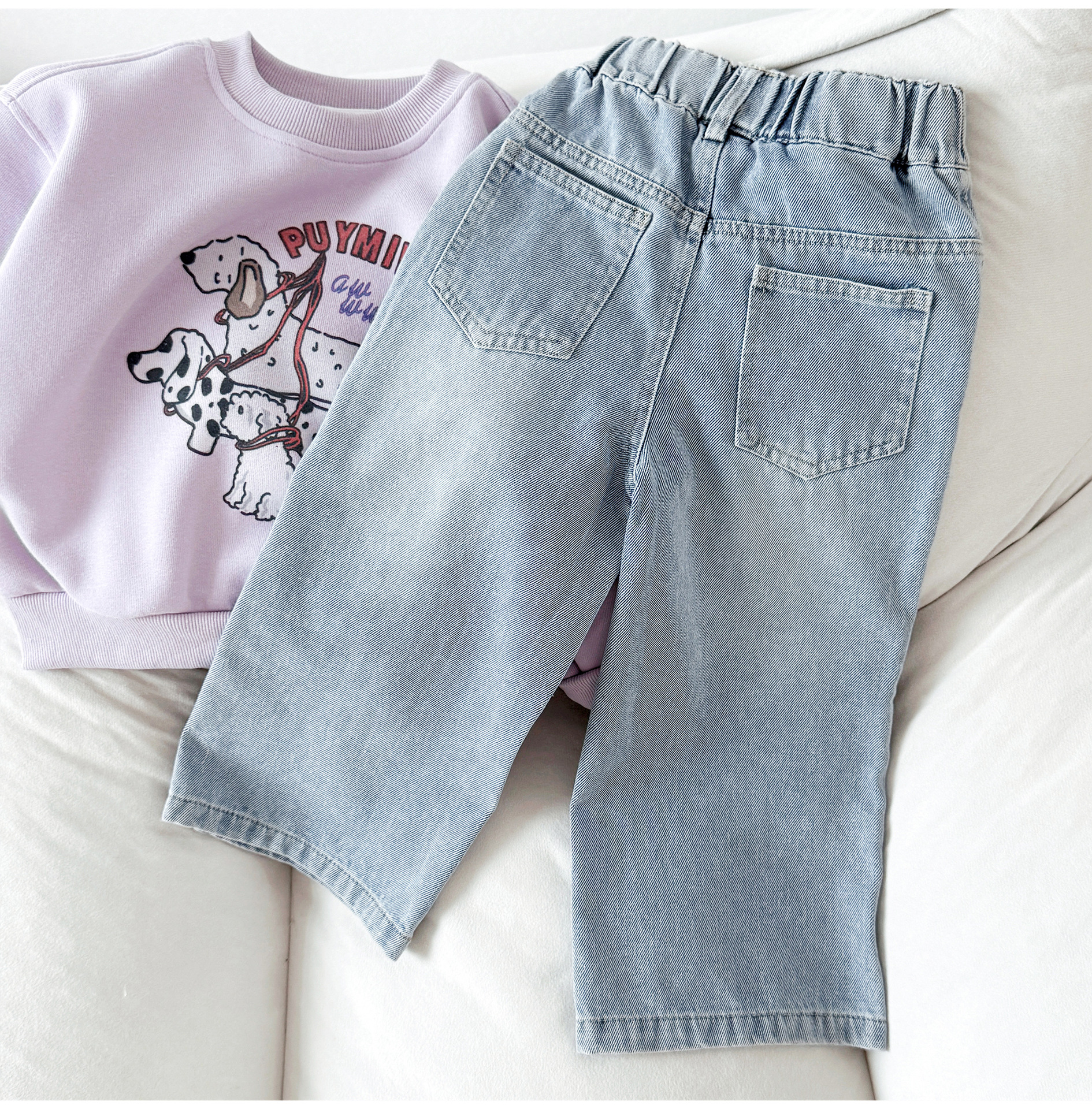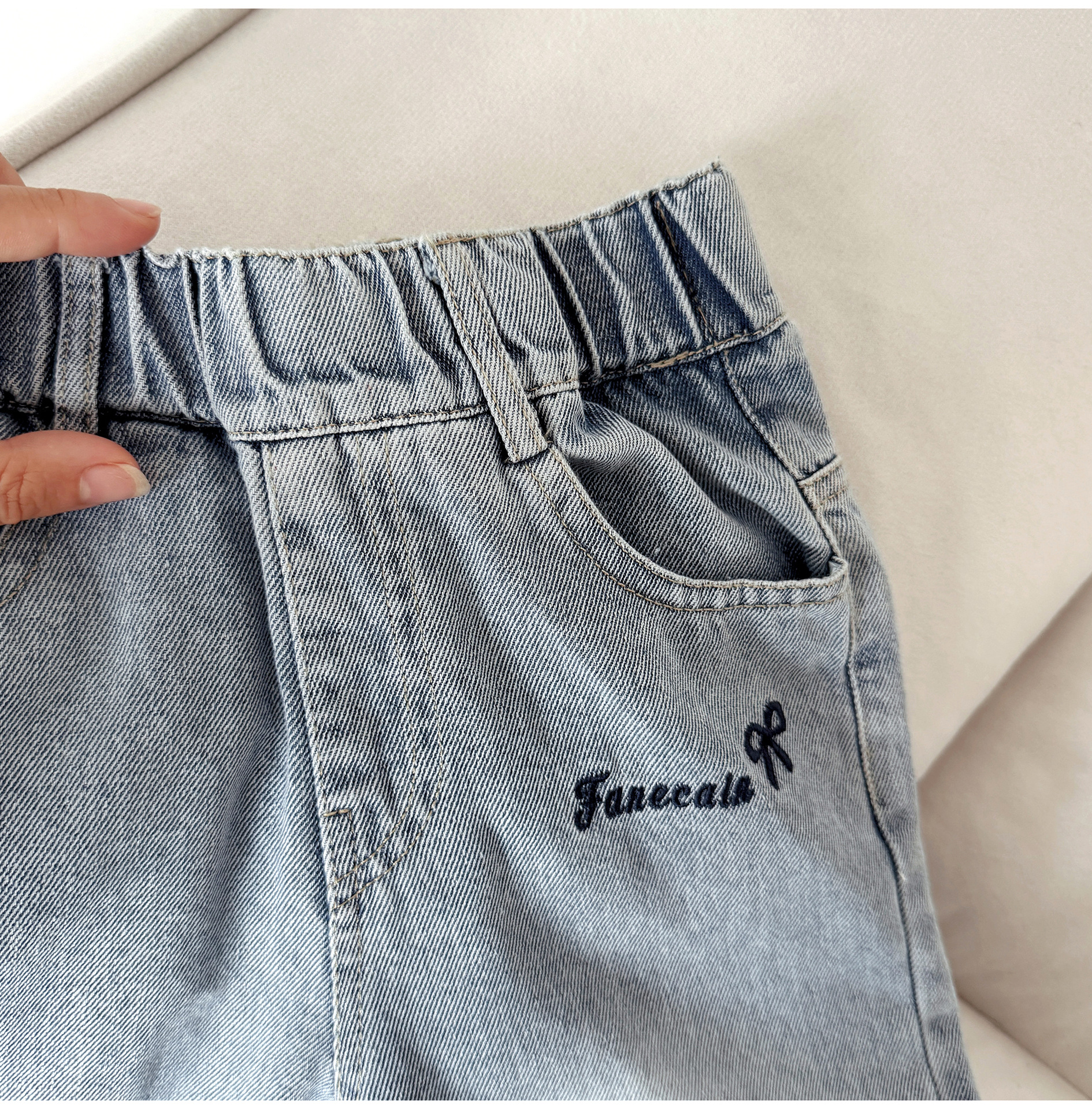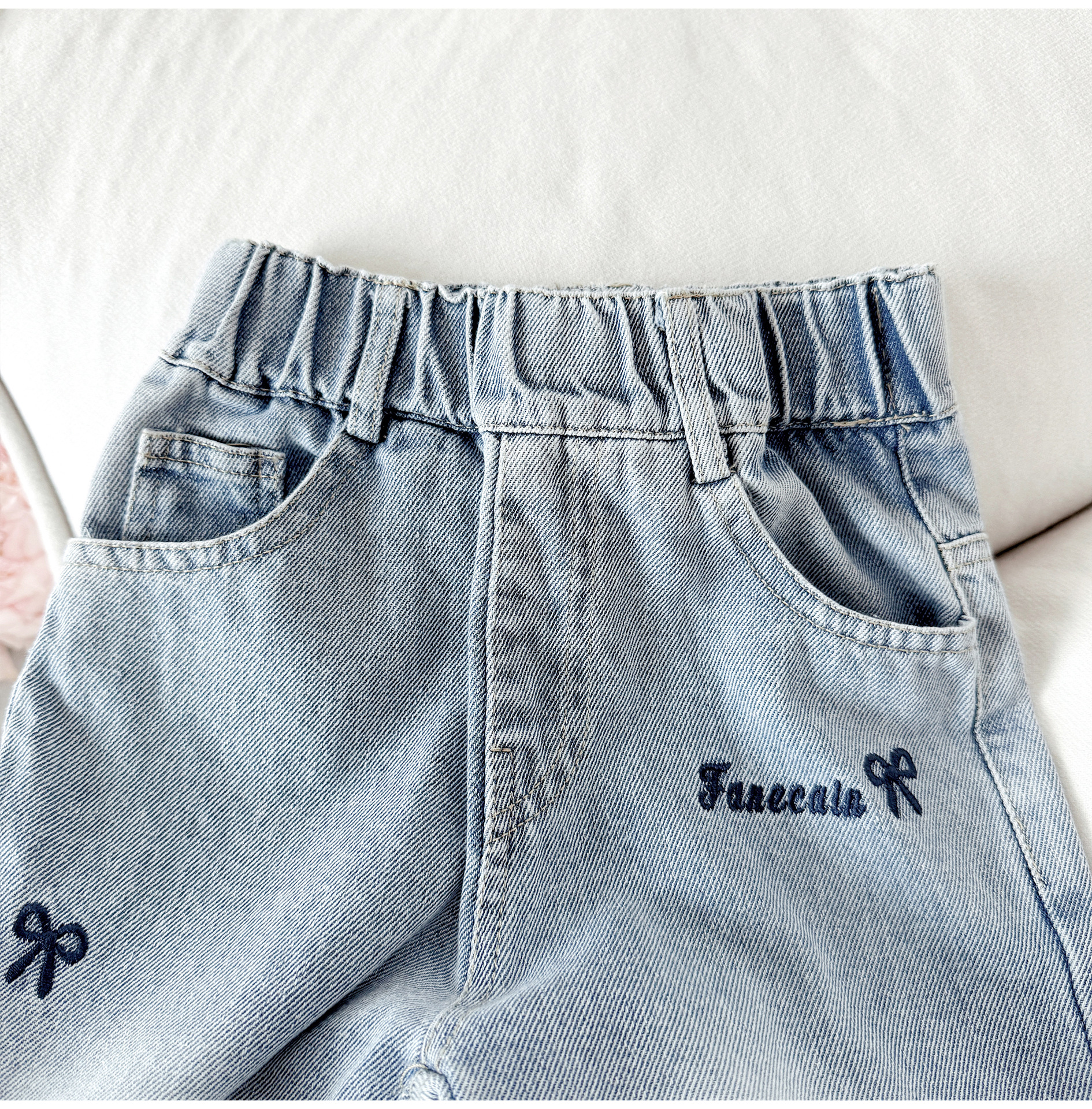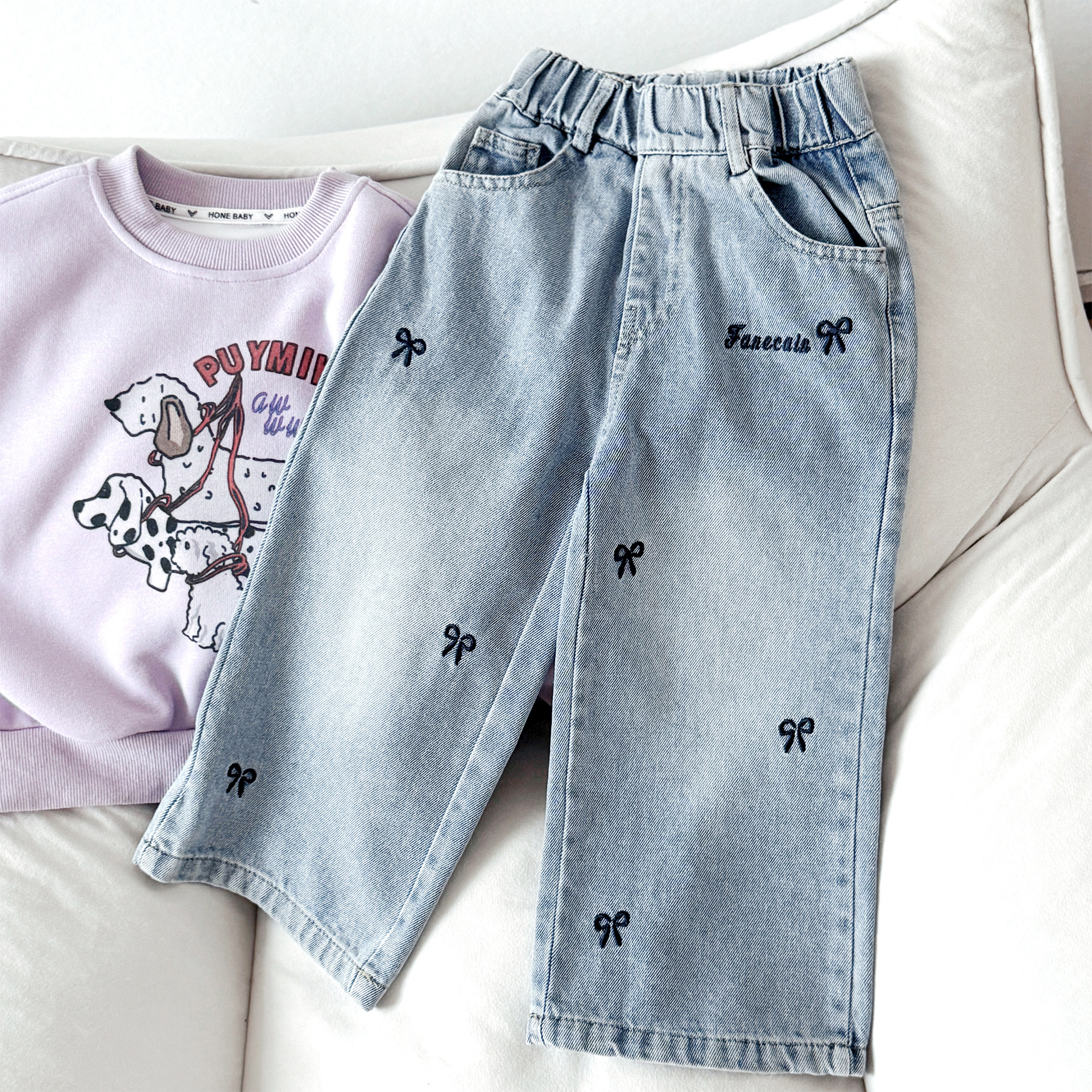 여자 청바지 2025 가을 새로운 스타일 어린 소녀 느슨한 스트레이트 와이드 레그 바지 어린이 부드러운 캐주얼 긴 바지스토어 가기