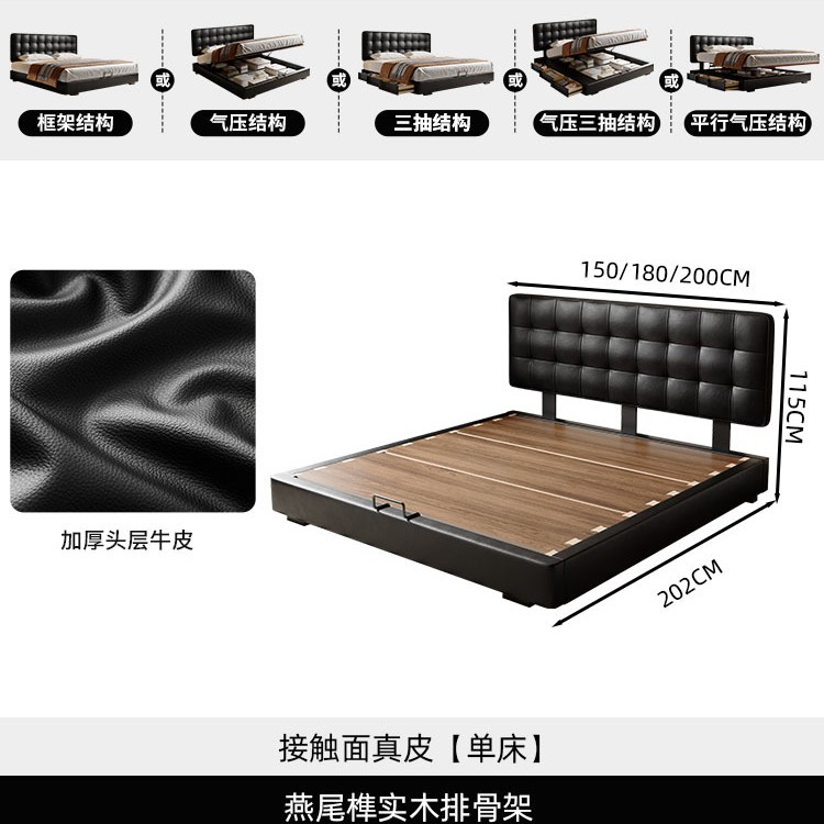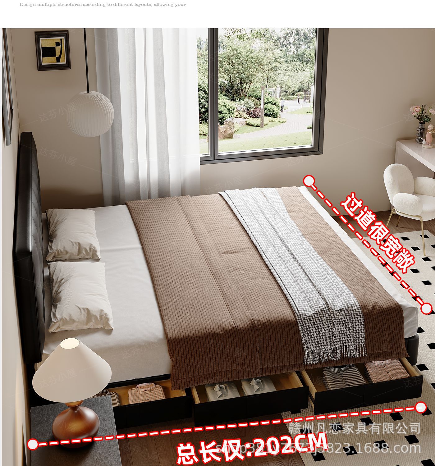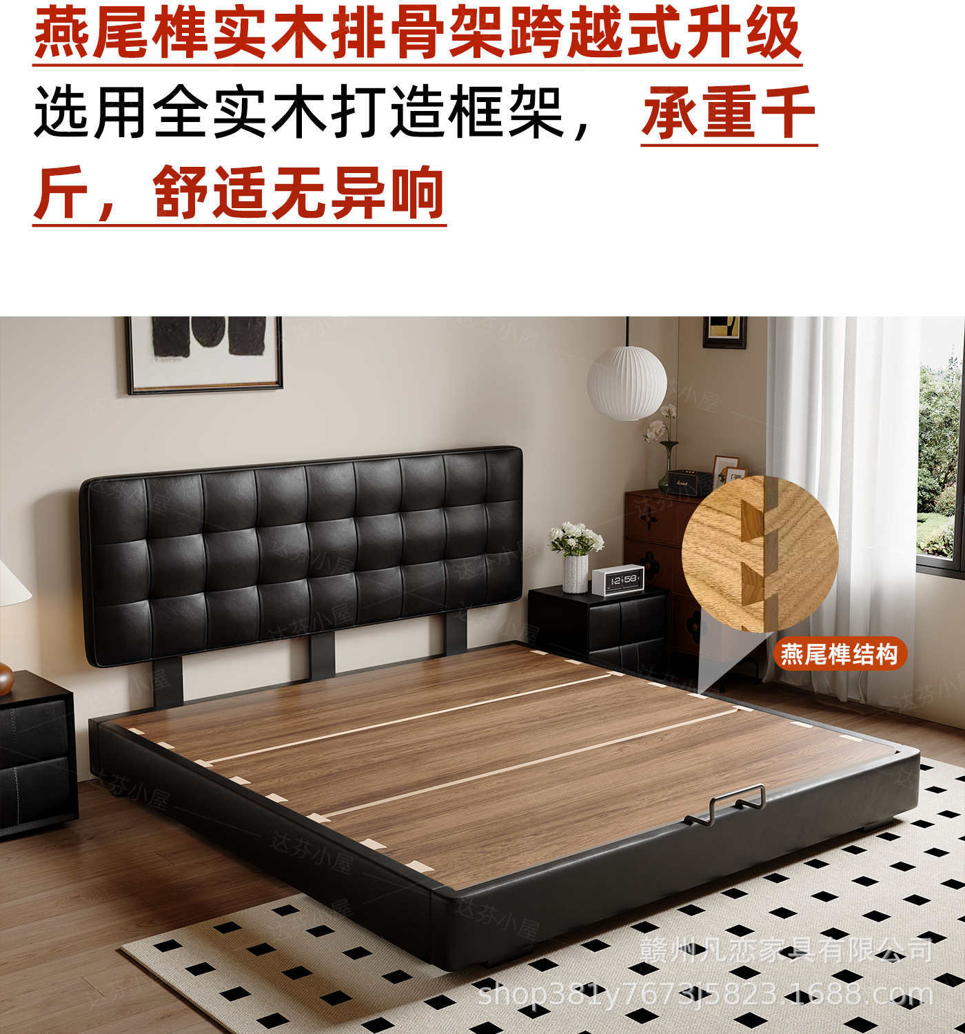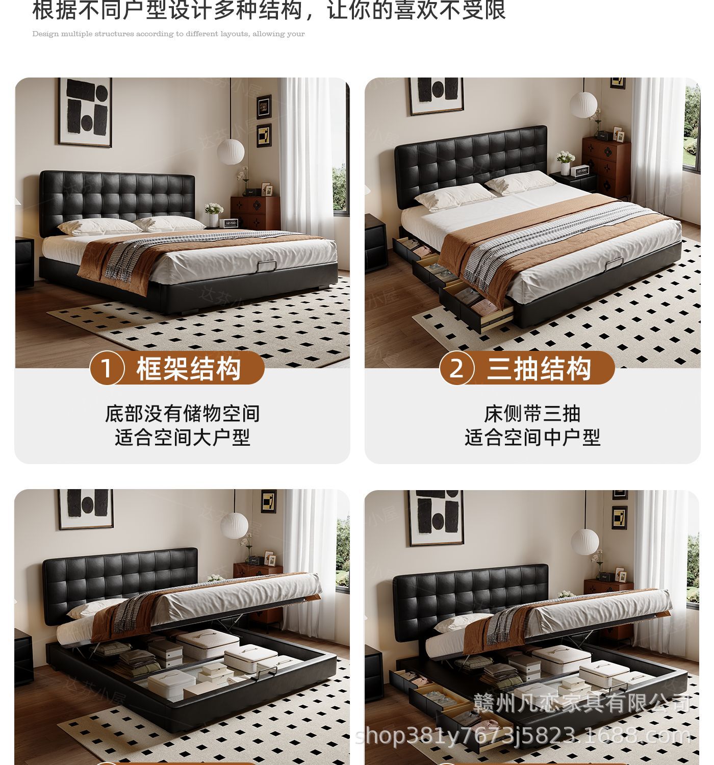 2025 새로운 이탈리아 스타일 라이트 럭셔리 복고풍 스타일 와플 가죽 부드러운 가방 침대 침실 더블 간단한 저장 가능한 웨딩 침대스토어 가기