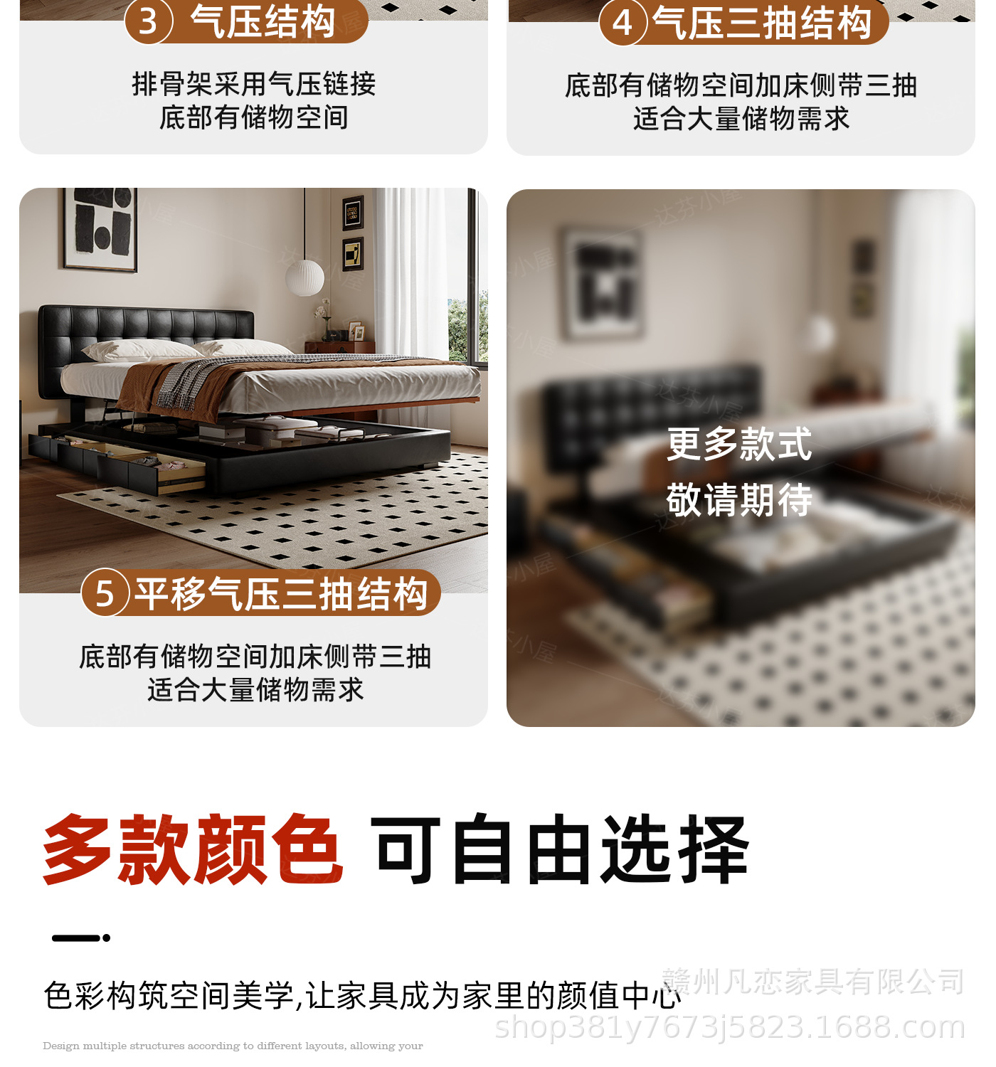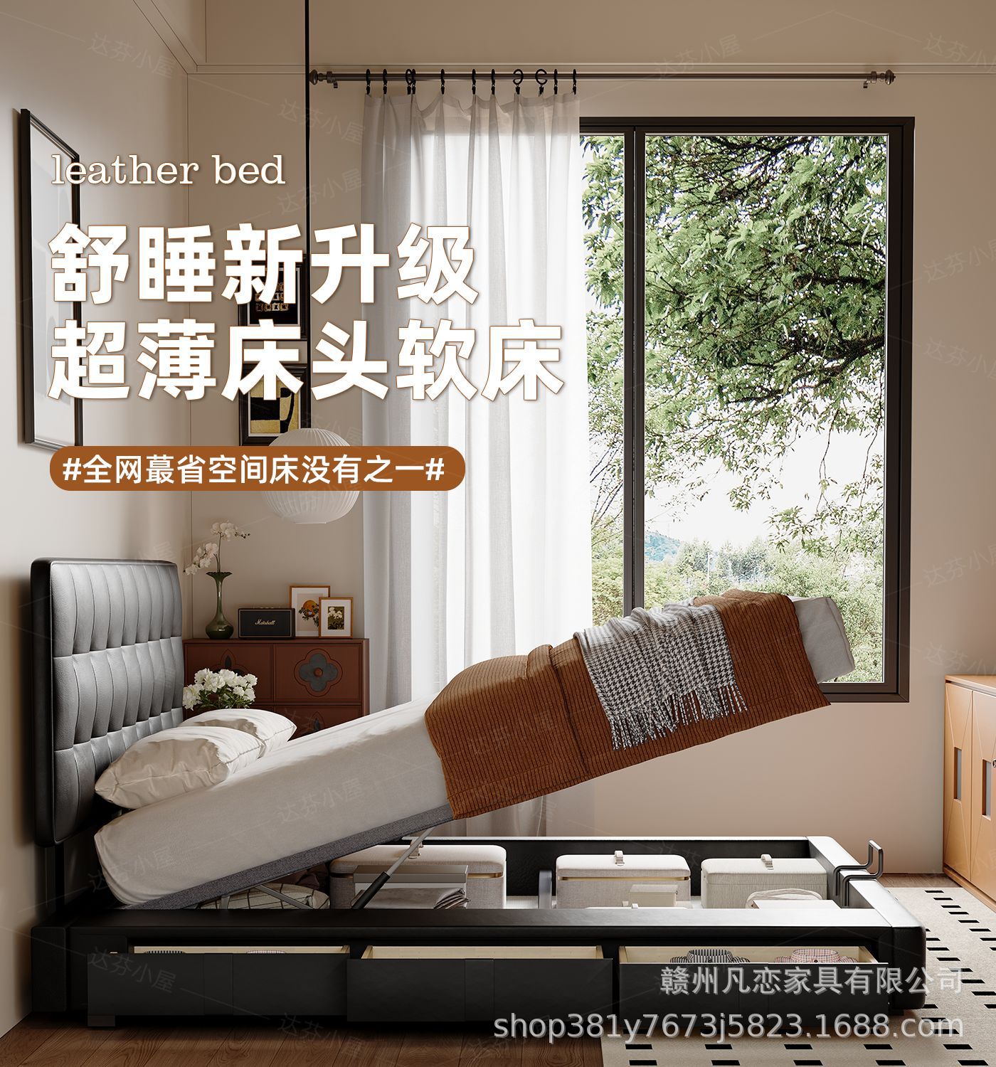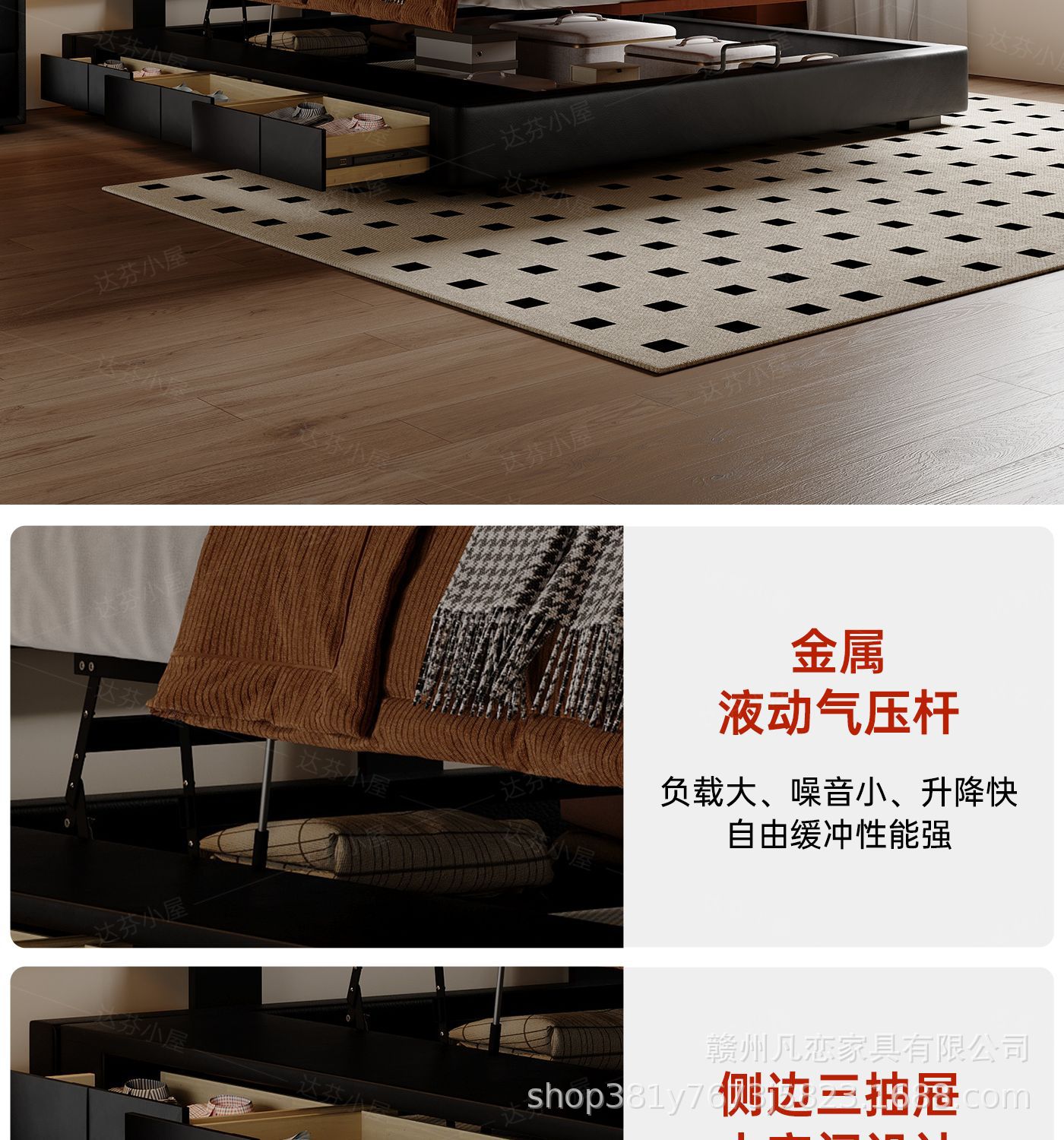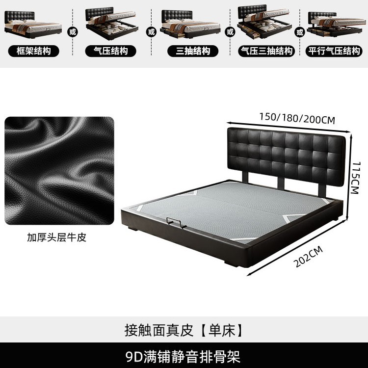 2025 새로운 이탈리아 스타일 라이트 럭셔리 복고풍 스타일 와플 가죽 부드러운 가방 침대 침실 더블 간단한 저장 가능한 웨딩 침대스토어 가기