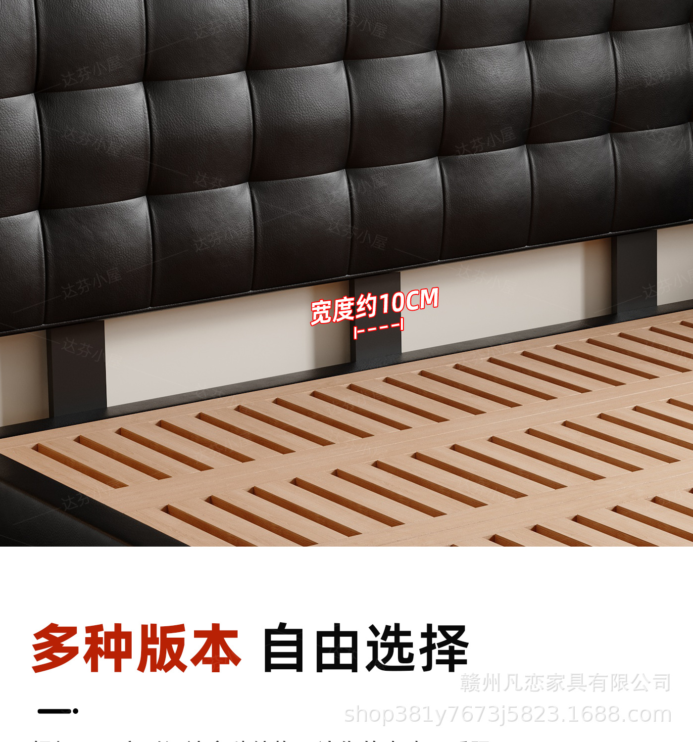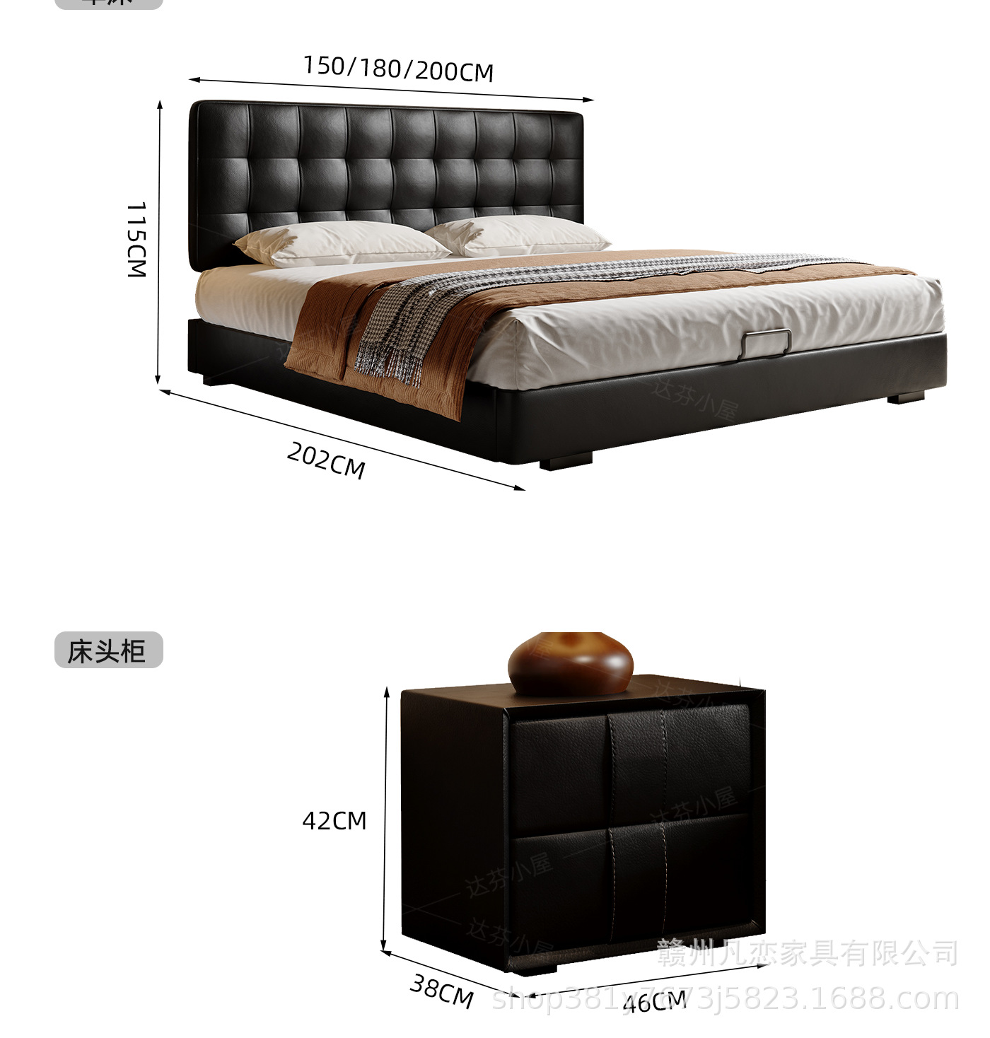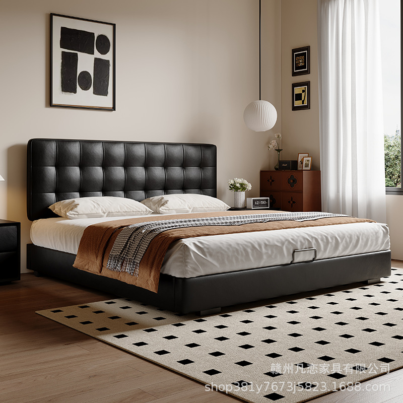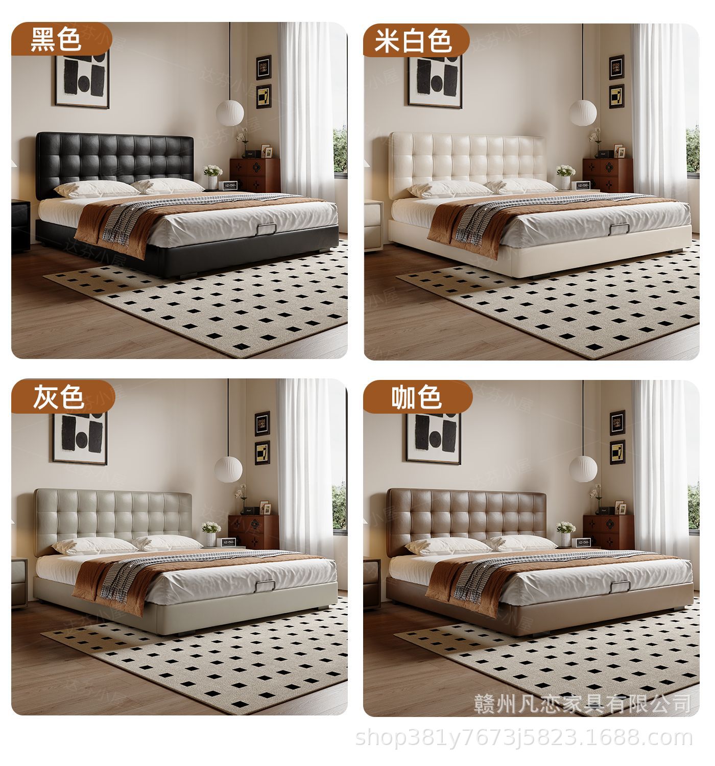 2025 새로운 이탈리아 스타일 라이트 럭셔리 복고풍 스타일 와플 가죽 부드러운 가방 침대 침실 더블 간단한 저장 가능한 웨딩 침대