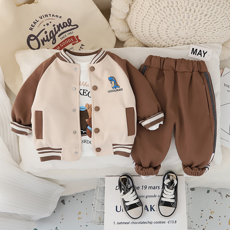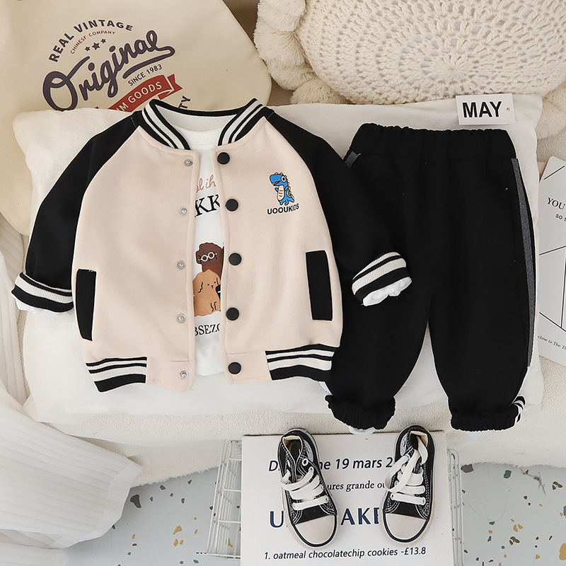 소년 봄, 가을 정장 2025 새로운 잘 생긴 어린이 만화 야구 유니폼 3 피스 세트 아기 봄, 가을 옷스토어 가기