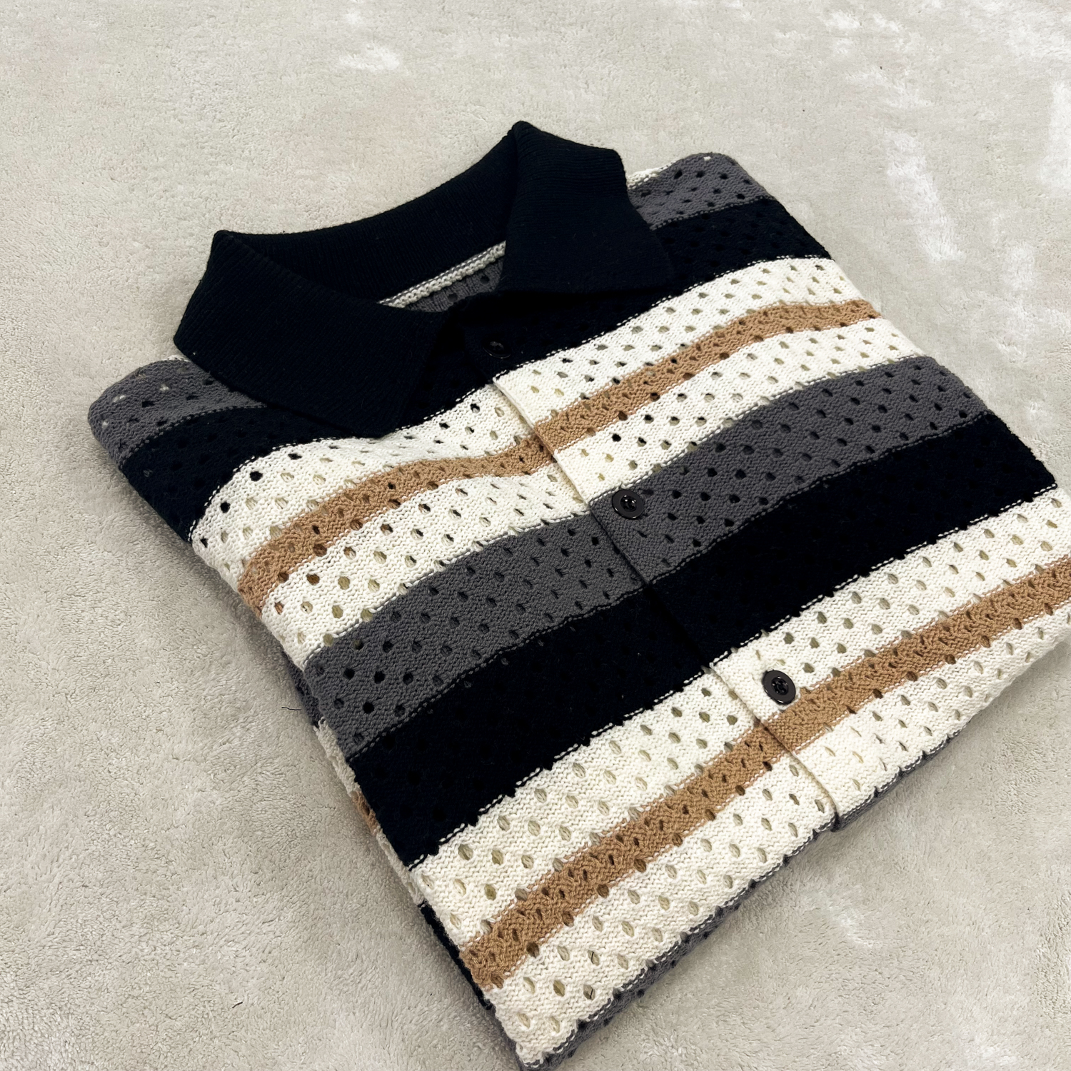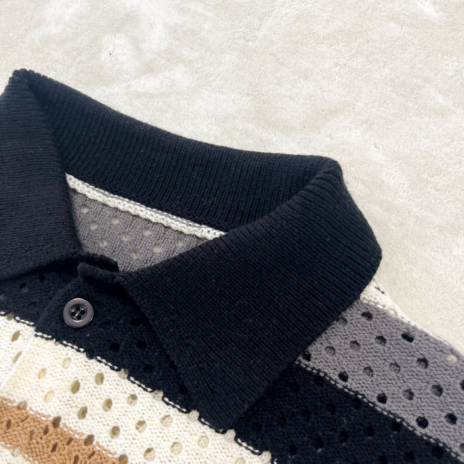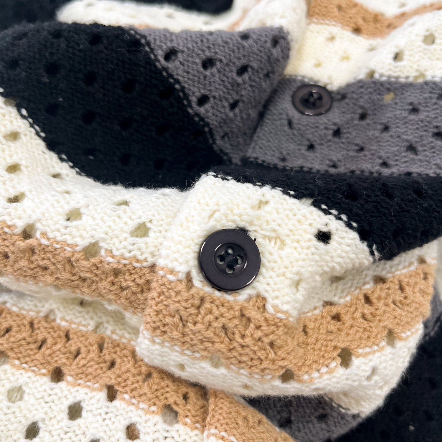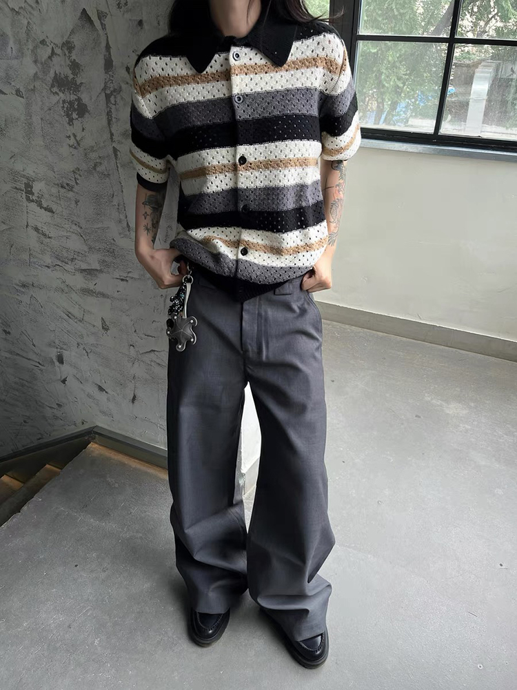 남성용 니치 트렌디 할로우 스트라이프 팽창 코튼 니트 반팔 가디건 여름 신작 올드 머니 스타일 숄더 박시 탑스토어 가기