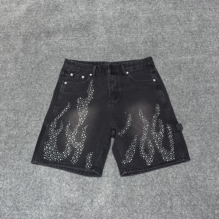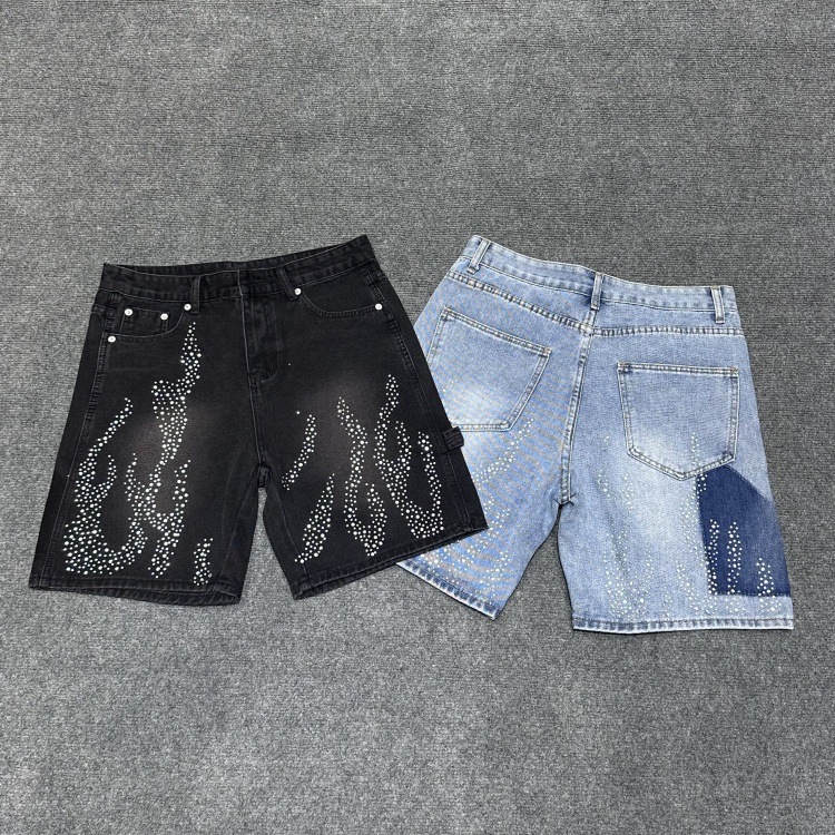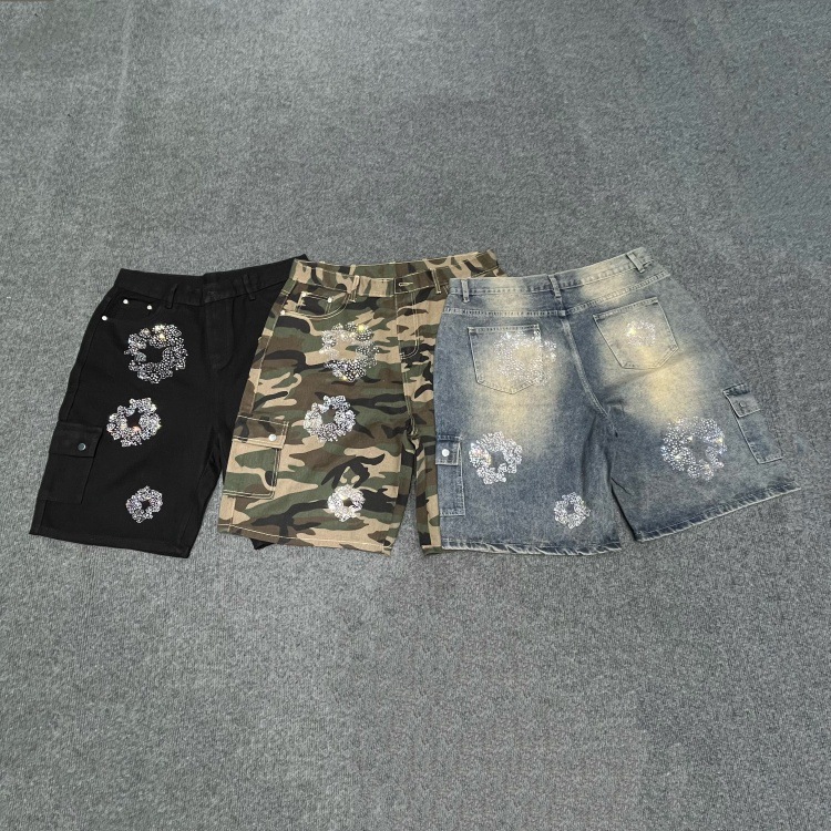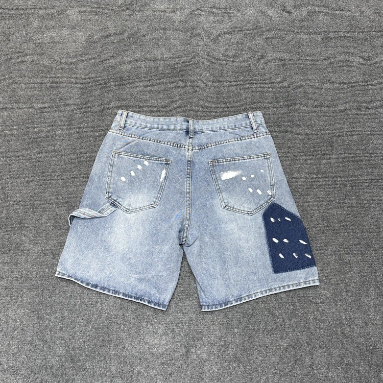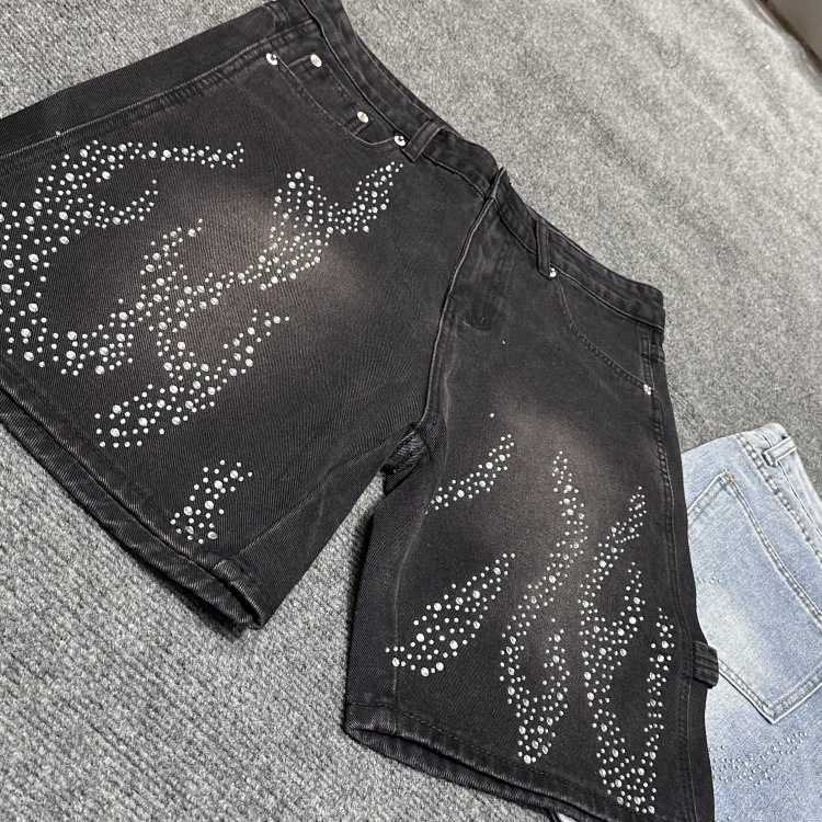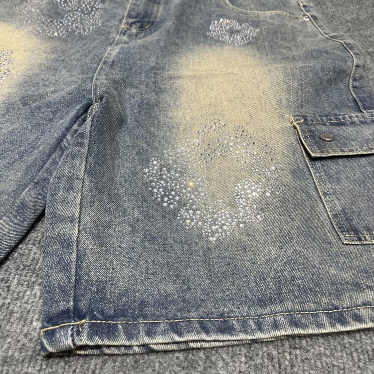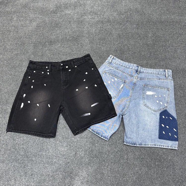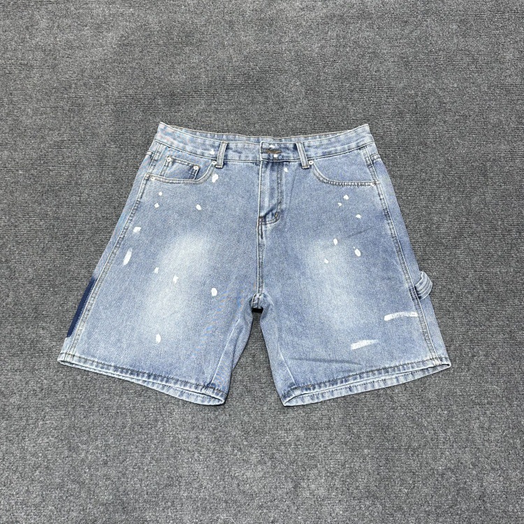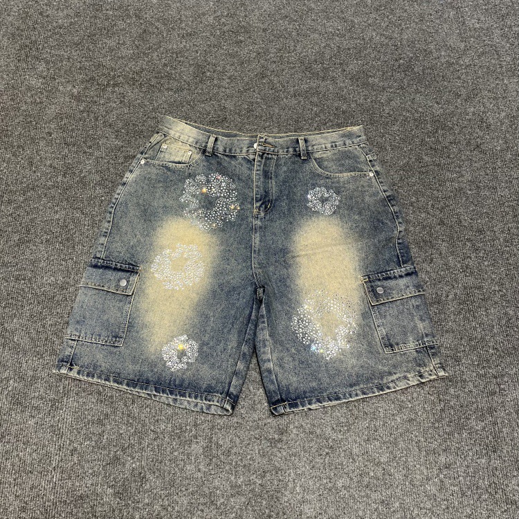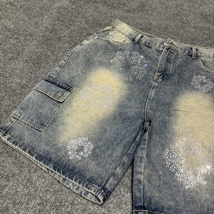 대외 무역 모델 공급 미국 트렌디 틈새 트렌디 브랜드 힙합 워싱 및 디스트레스드 대형 스트레이트 레그 5부 반바지 청바지 뚱보 남자스토어 가기