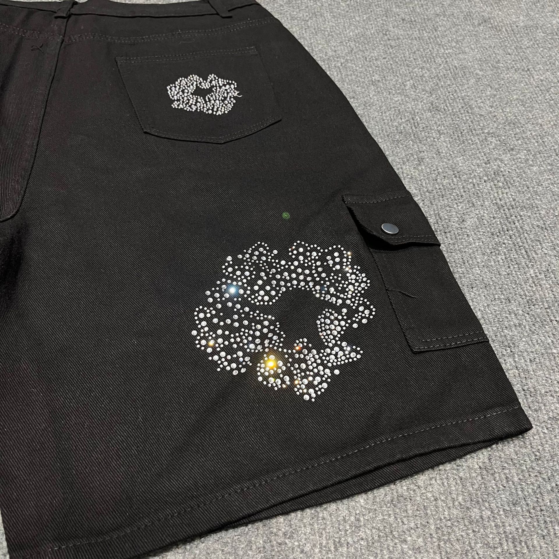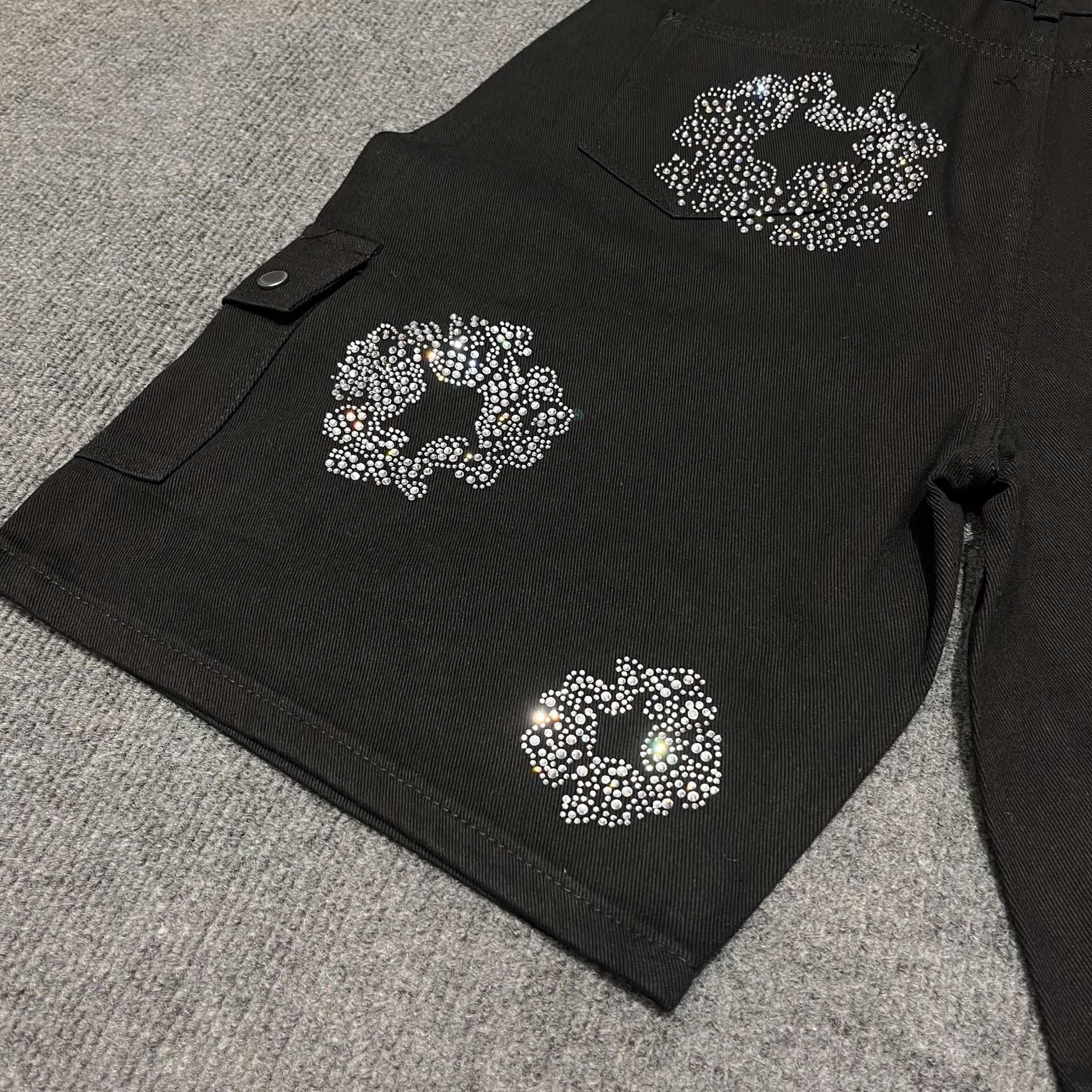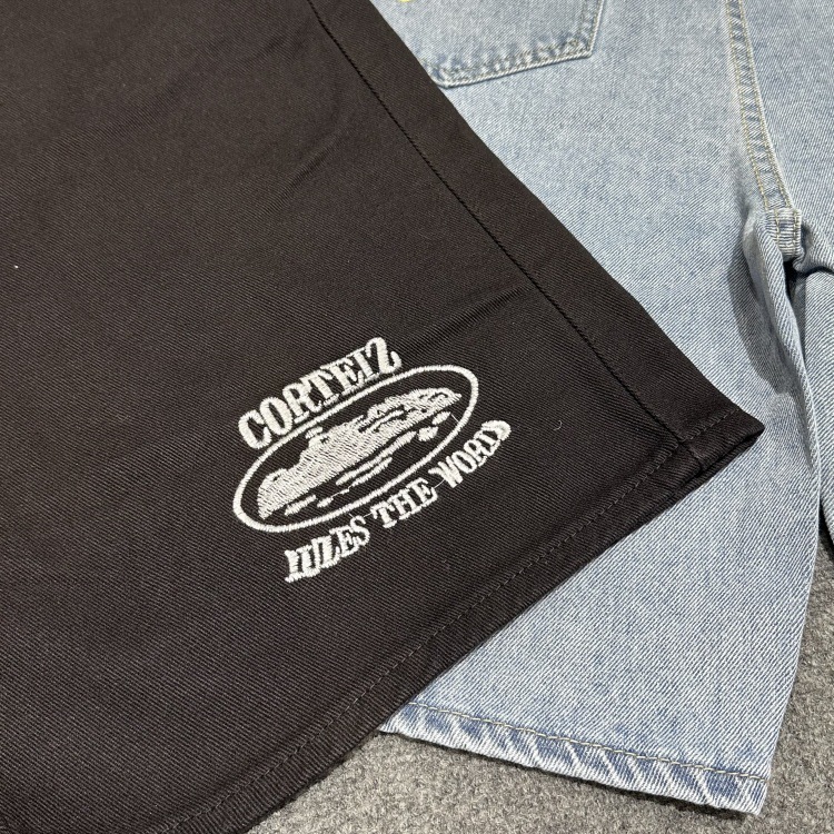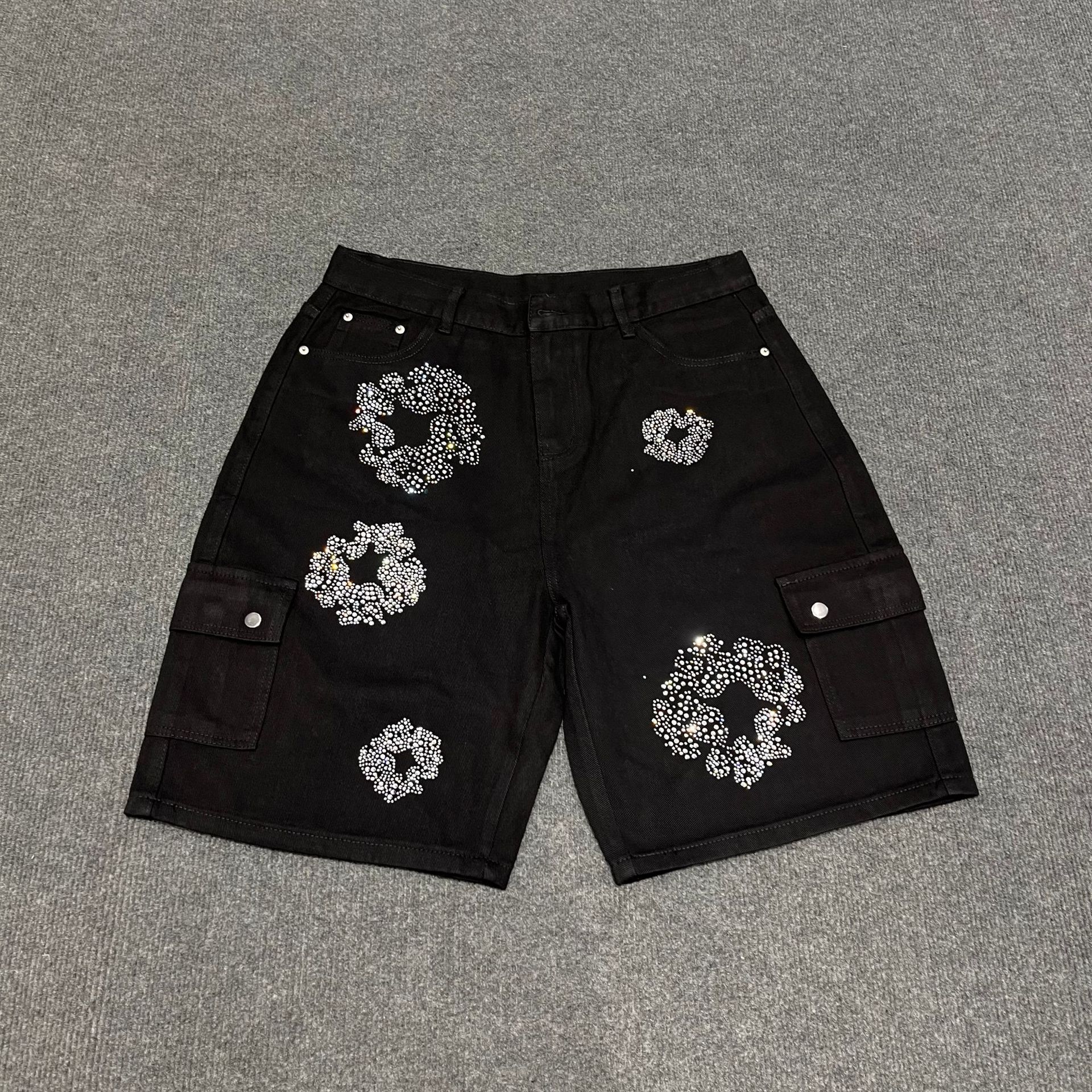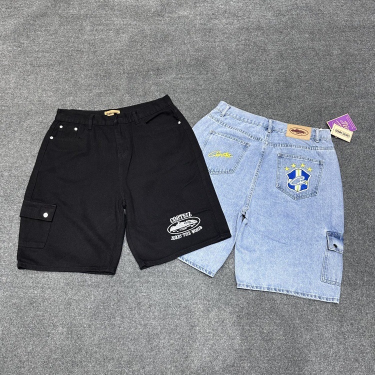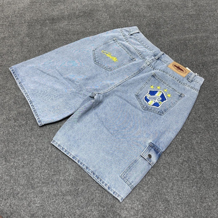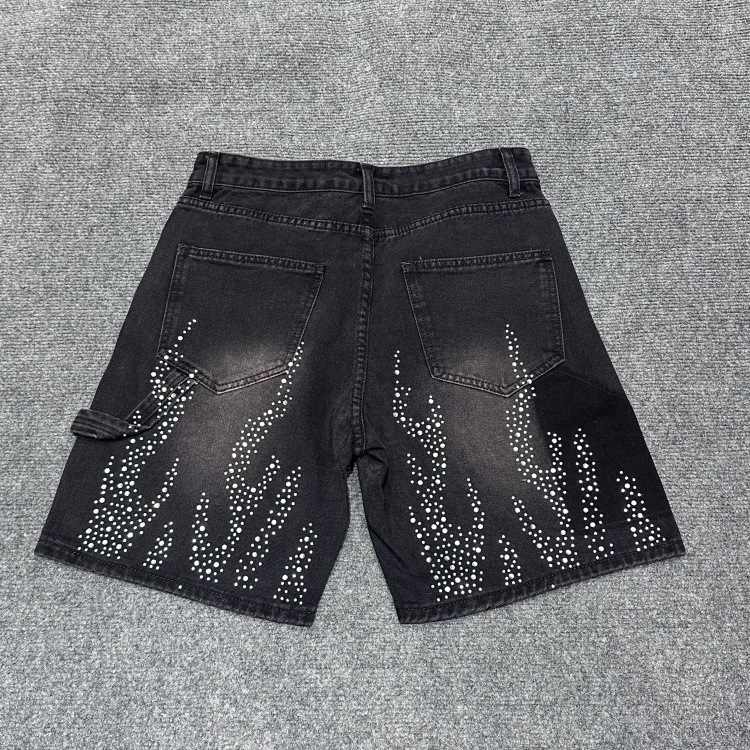 대외 무역 모델 공급 미국 트렌디 틈새 트렌디 브랜드 힙합 워싱 및 디스트레스드 대형 스트레이트 레그 5부 반바지 청바지 뚱보 남자스토어 가기