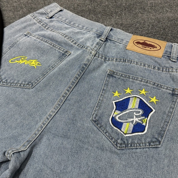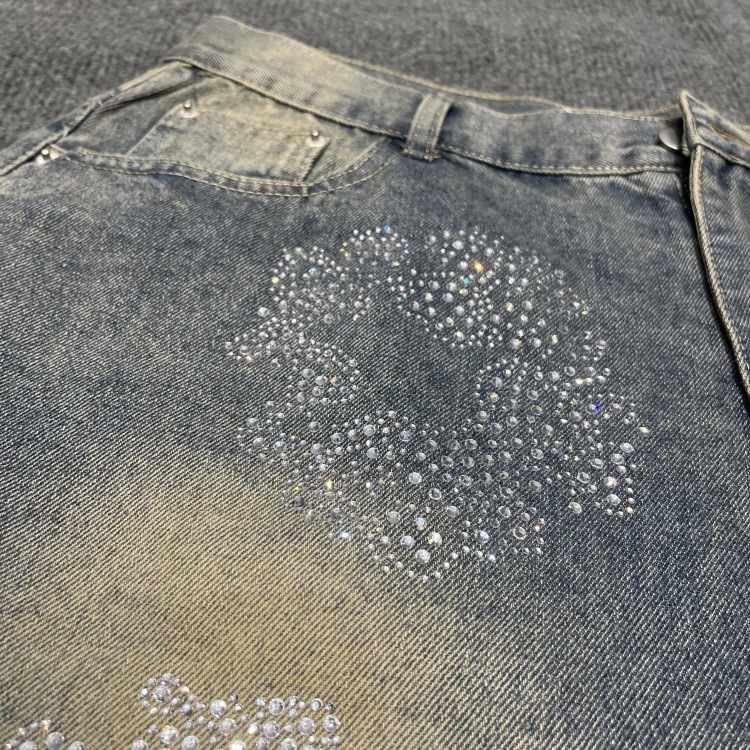대외 무역 모델 공급 미국 트렌디 틈새 트렌디 브랜드 힙합 워싱 및 디스트레스드 대형 스트레이트 레그 5부 반바지 청바지 뚱보 남자