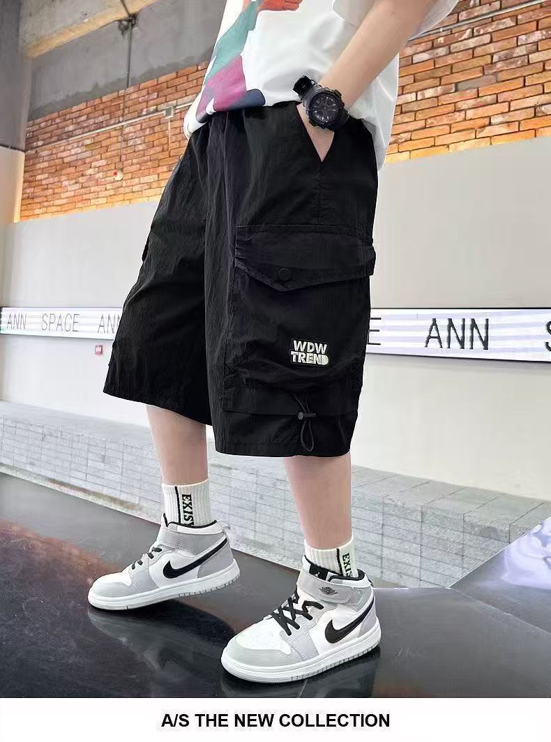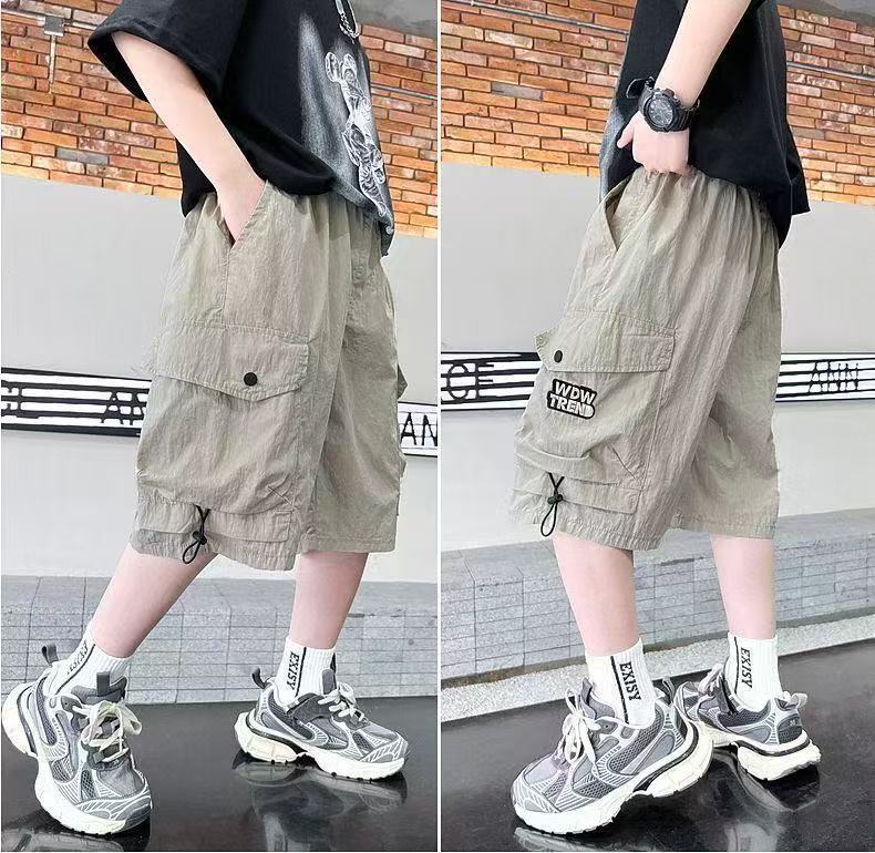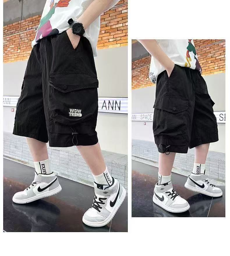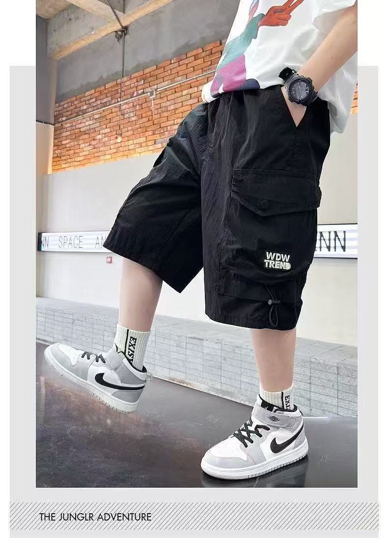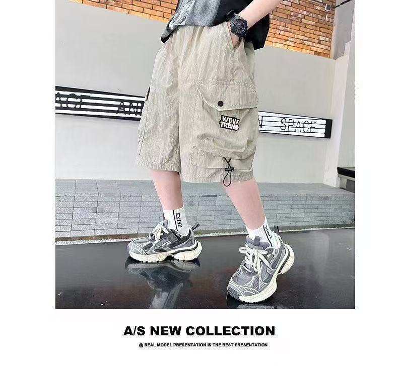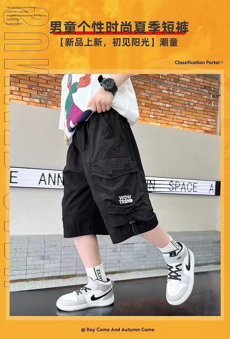 새로운 스타일의 소년 카고 반바지, 여름 얇은 루즈 캐주얼 5부 바지, 멋진 아동용 중대형 아동 여름 핫 스타일스토어 가기