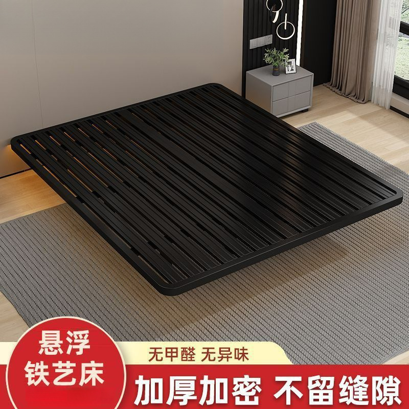 공중부양 침대 프레임, 전체 철제, 간단한 마스터 침실, 침대 옆이 없는 철제 침대 프레임, 더블 침대, 성인 아파트 임대 주택 철제 프레임 침대스토어 가기