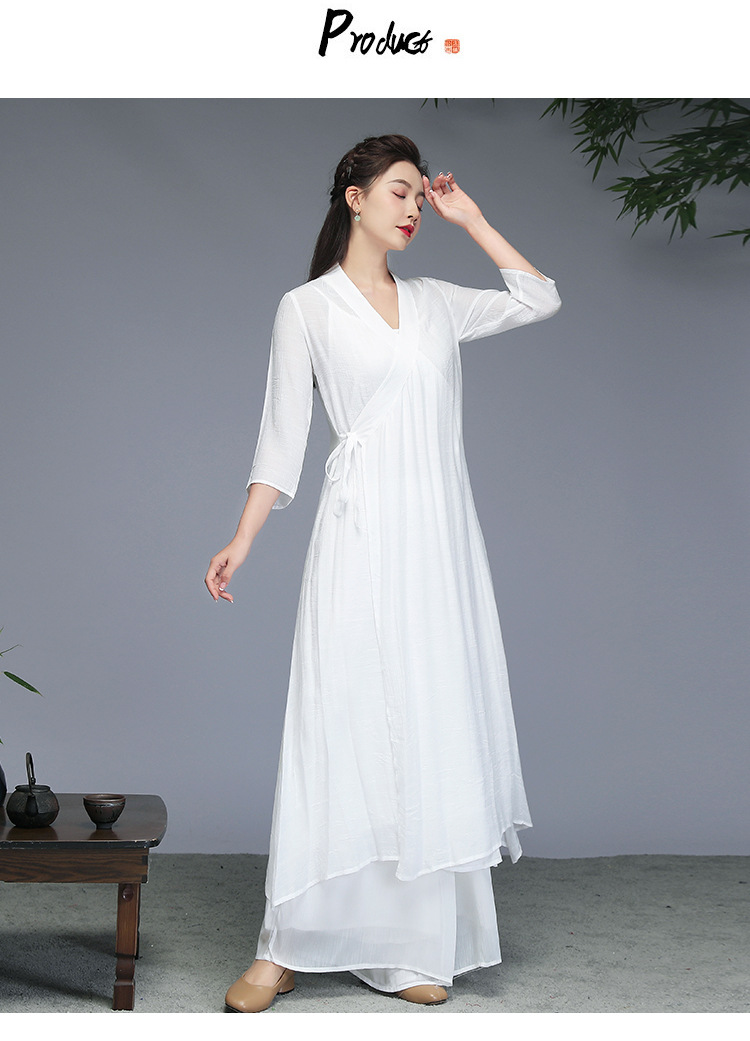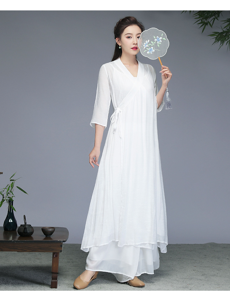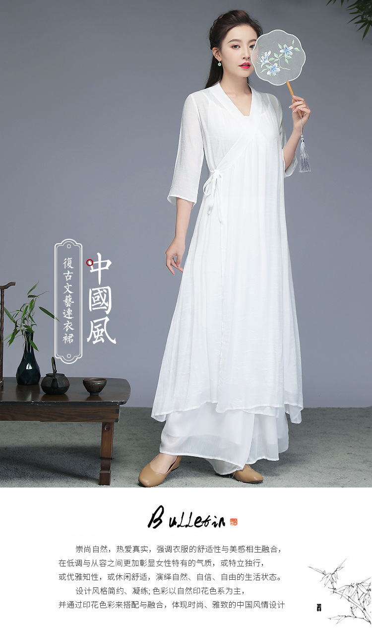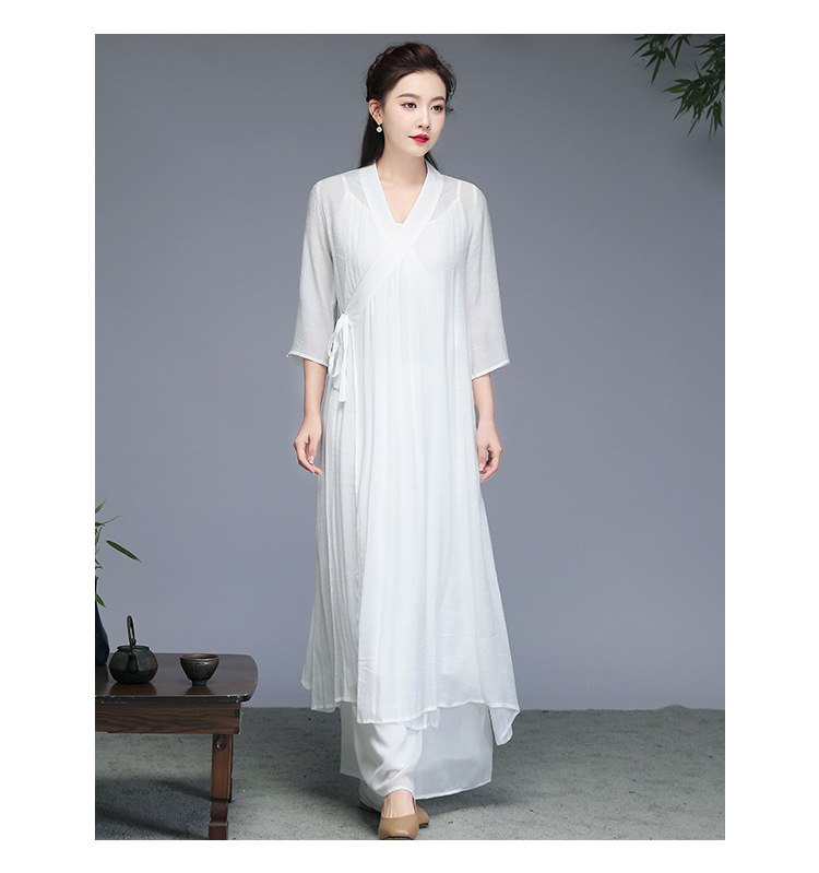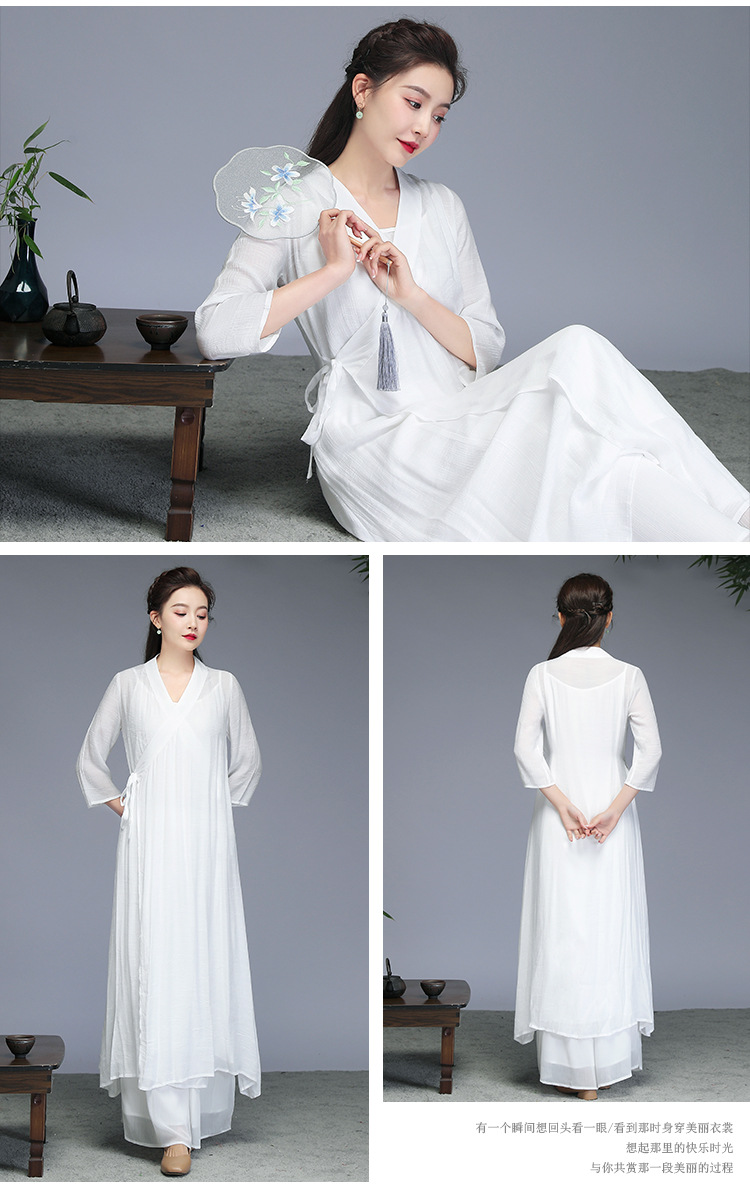 중국 스타일 선 여성을위한 면화 및 린넨 차 의류 명상 의류 선 댄스 의류 복고풍 Hanfu 드레스 투피스 세트 도매