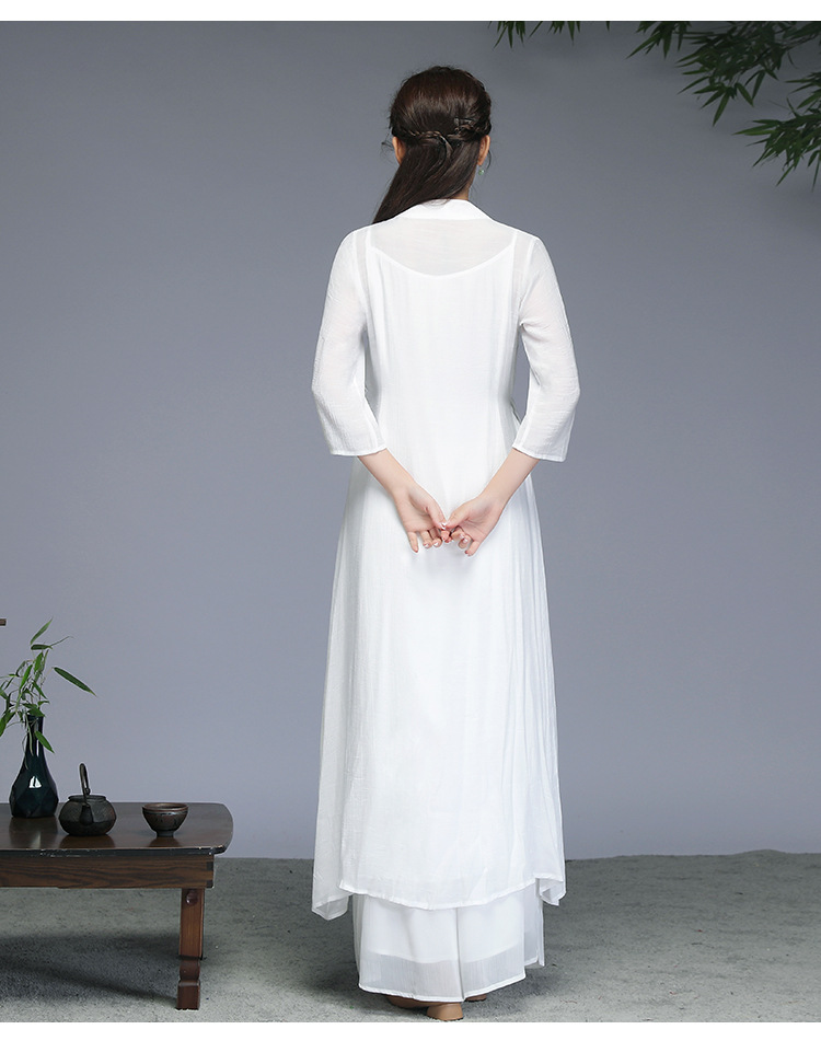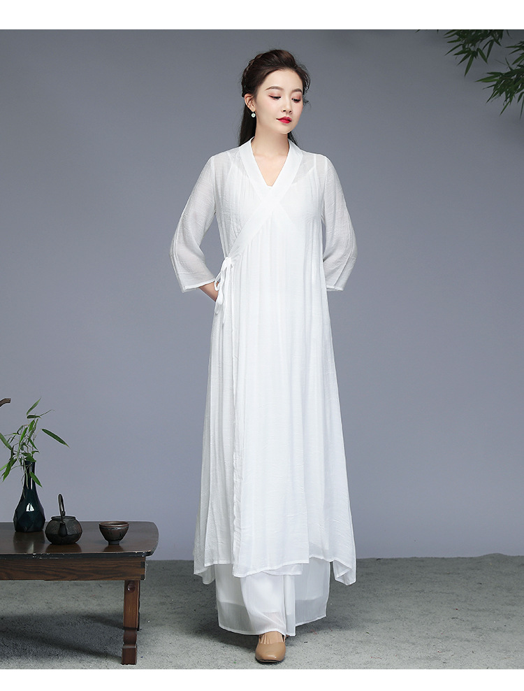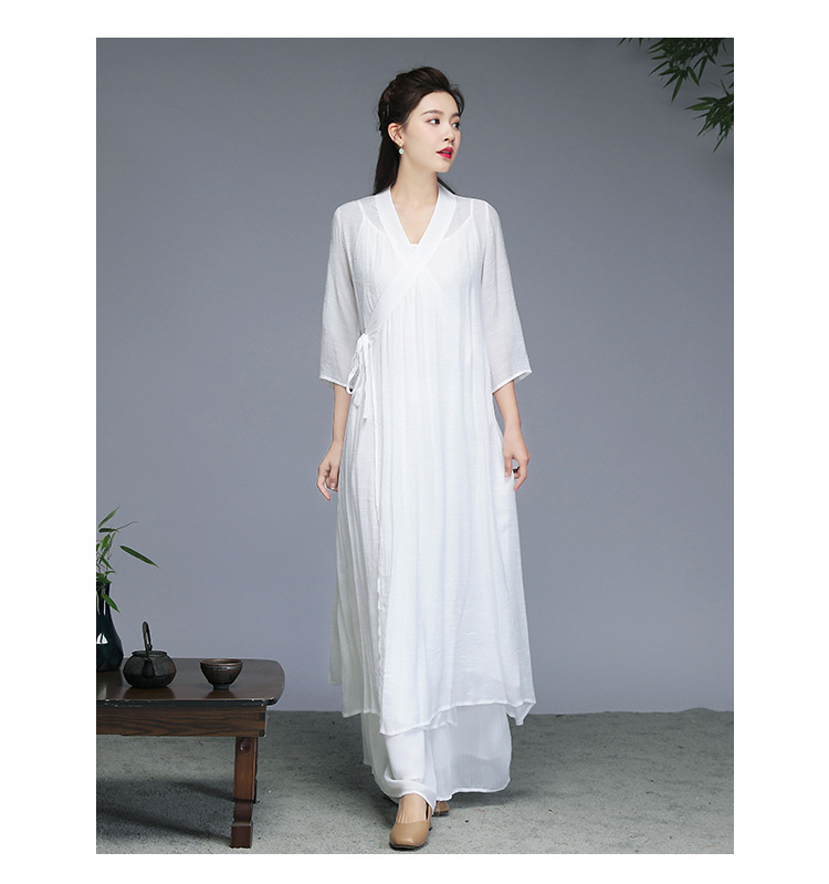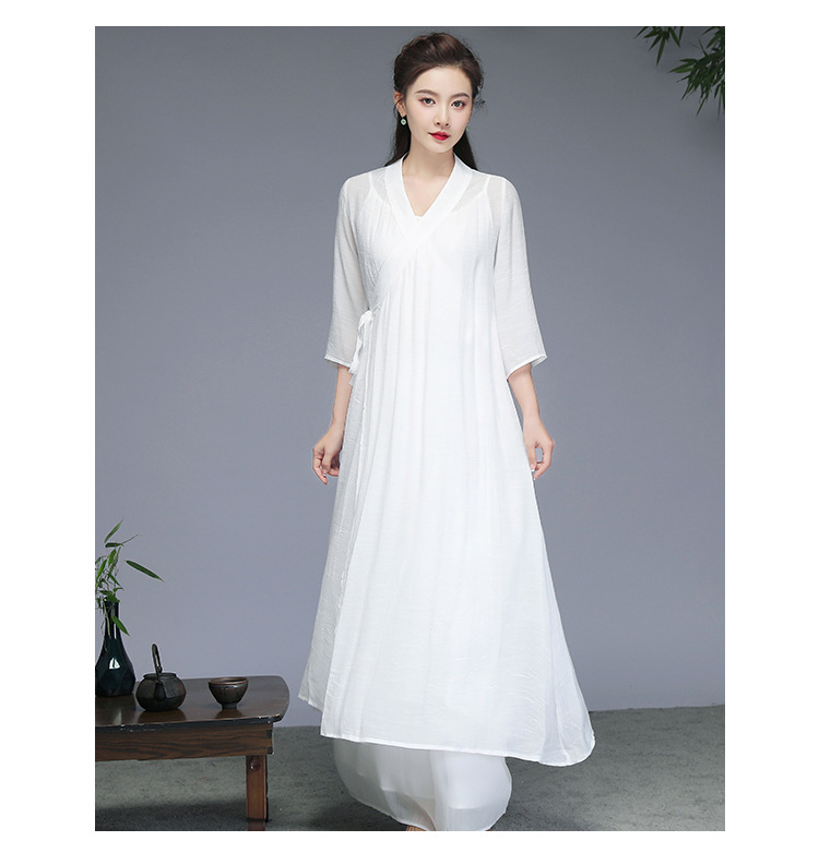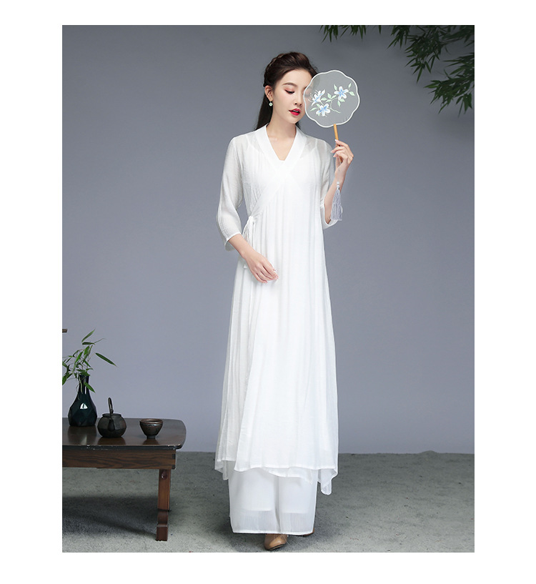 중국 스타일 선 여성을위한 면화 및 린넨 차 의류 명상 의류 선 댄스 의류 복고풍 Hanfu 드레스 투피스 세트 도매
