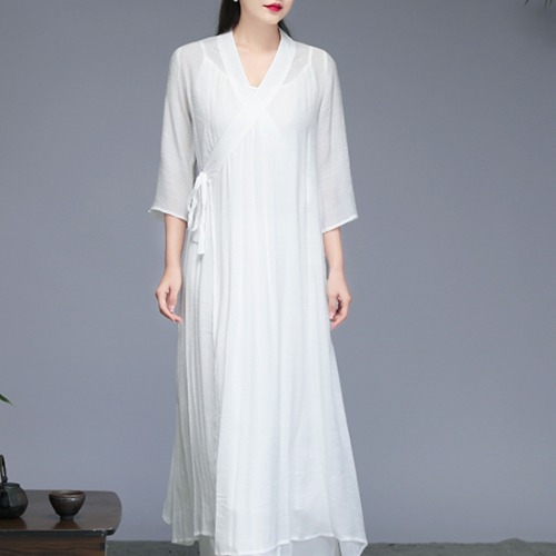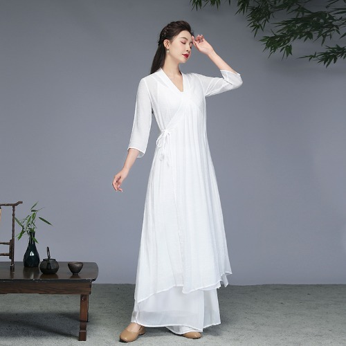 중국 스타일 선 여성을위한 면화 및 린넨 차 의류 명상 의류 선 댄스 의류 복고풍 Hanfu 드레스 투피스 세트 도매스토어 가기