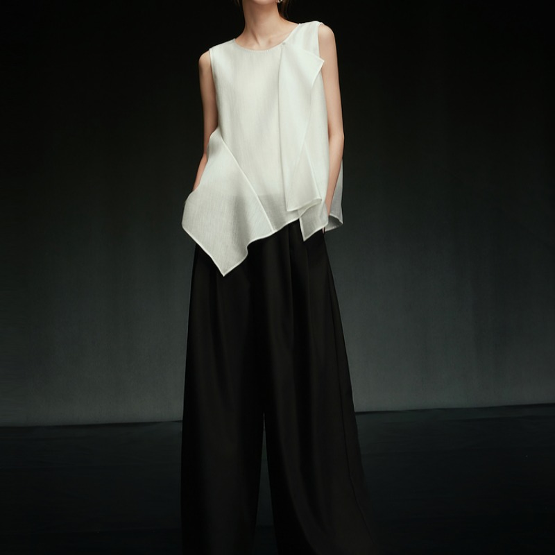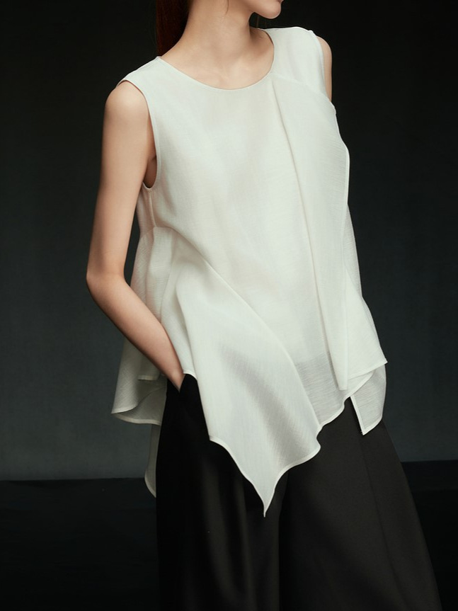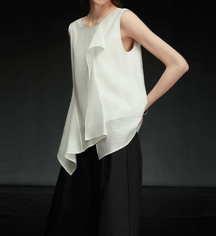 여성을위한 흰색 프릴 아세테이트 민소매 셔츠 2025 여름 새로운 하이 엔드 텐셀 쉬폰 셔츠
