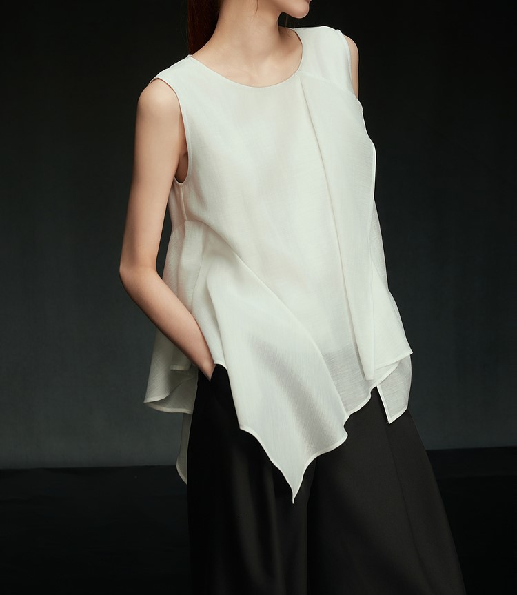 여성을위한 흰색 프릴 아세테이트 민소매 셔츠 2025 여름 새로운 하이 엔드 텐셀 쉬폰 셔츠스토어 가기