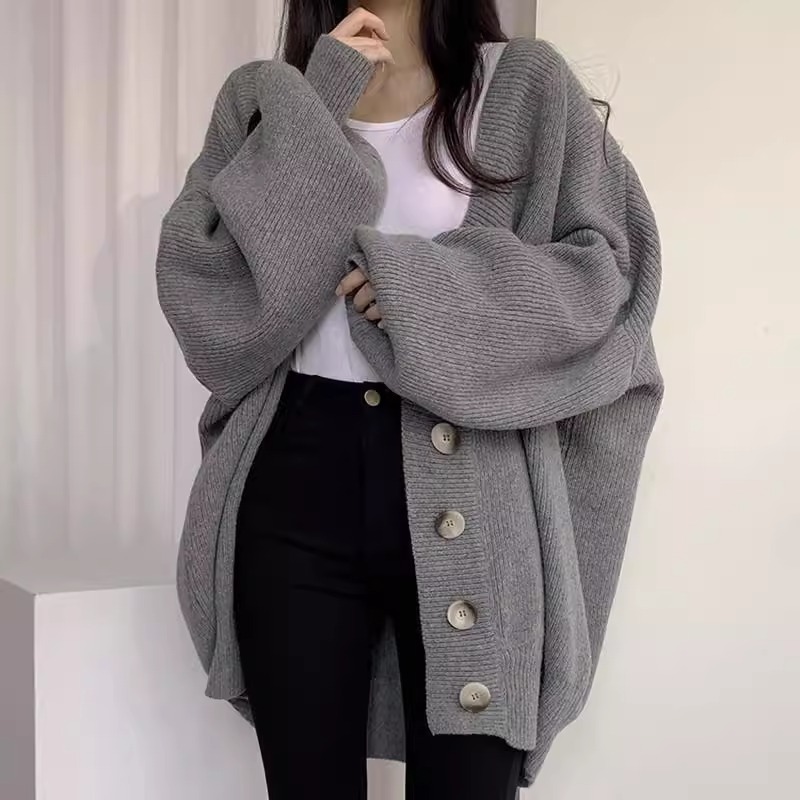 국경 간 대외 무역 수출 플러스 사이즈 여성 의류 중간 길이 일본식 게으른 복고풍 느슨한 스웨터 재킷 니트 카디건 유행스토어 가기