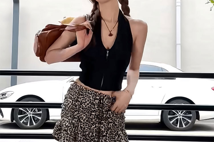 아메리칸 레트로 핫걸 레오파드 프린트 신축성 있는 허리 스트랩 스커트 여름 소형 다용도 케이크 스커트 짧은 스커트스토어 가기