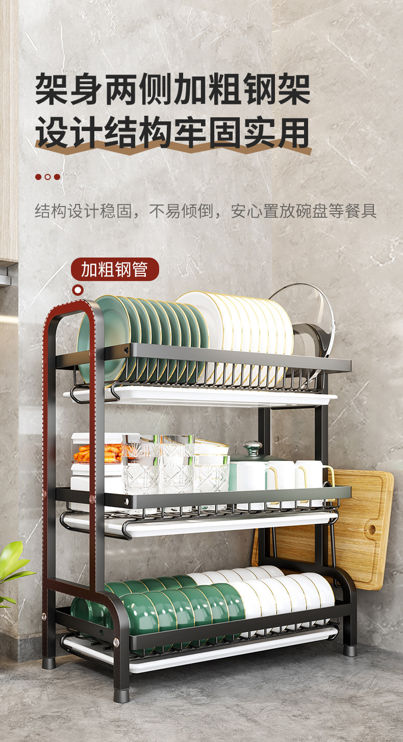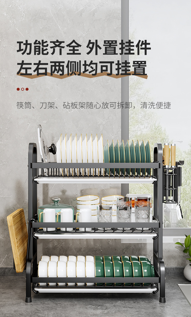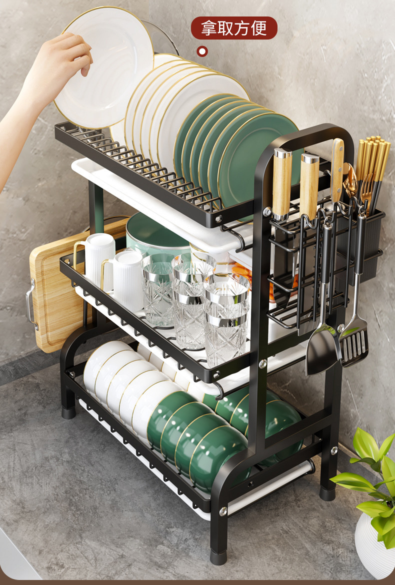 국경 간 주방 선반, 접시 및 접시 보관함, 다층 배수구 선반, 다기능 조리대 그릇 및 젓가락 보관함스토어 가기
