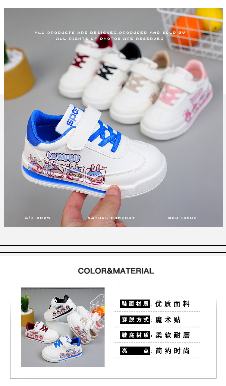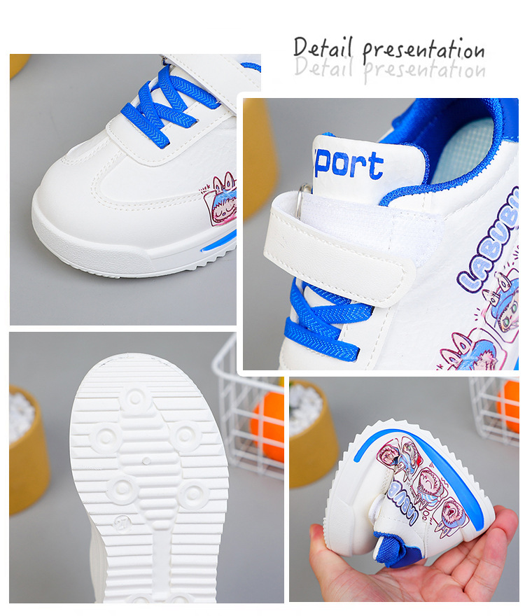 아동용 로우탑 운동화, 남아용 운동화, 여아용 흰색 신발, 가볍고 통기성이 뛰어나며 내마모성이 뛰어난 중대형 아동화, 만화 및 다용도