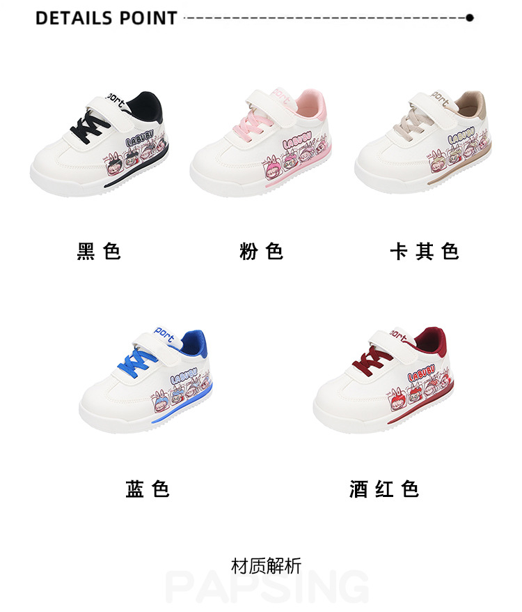아동용 로우탑 운동화, 남아용 운동화, 여아용 흰색 신발, 가볍고 통기성이 뛰어나며 내마모성이 뛰어난 중대형 아동화, 만화 및 다용도스토어 가기