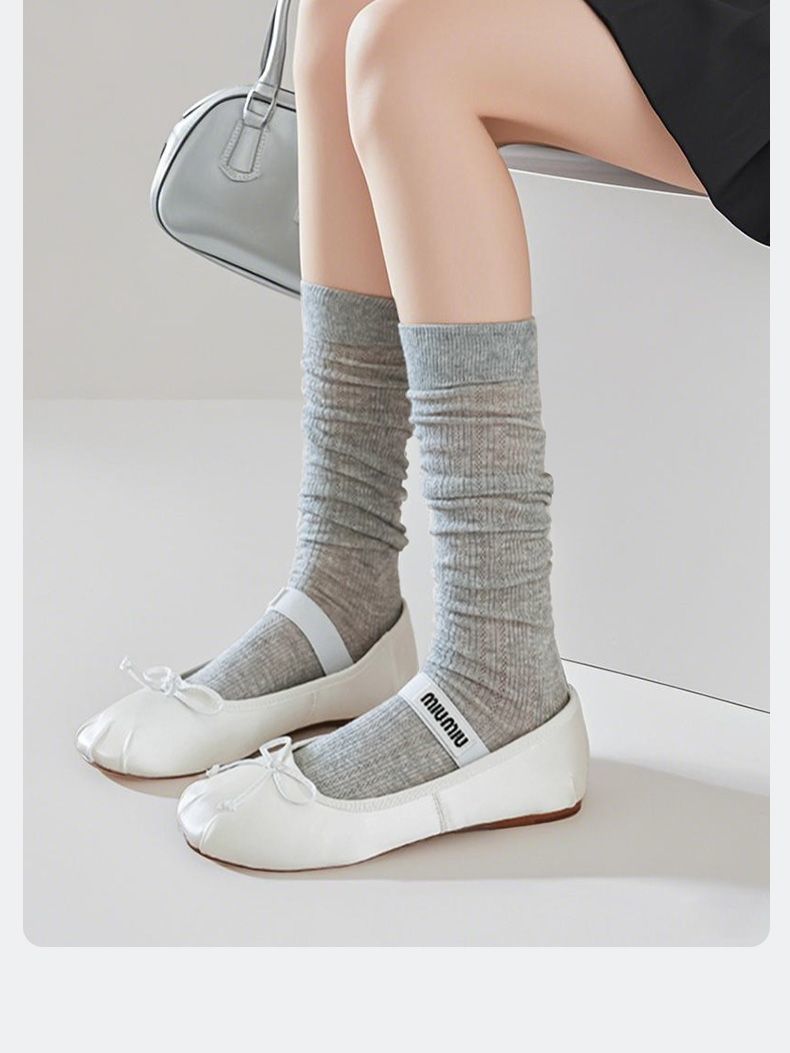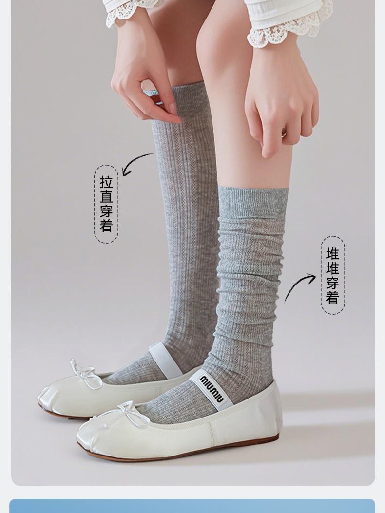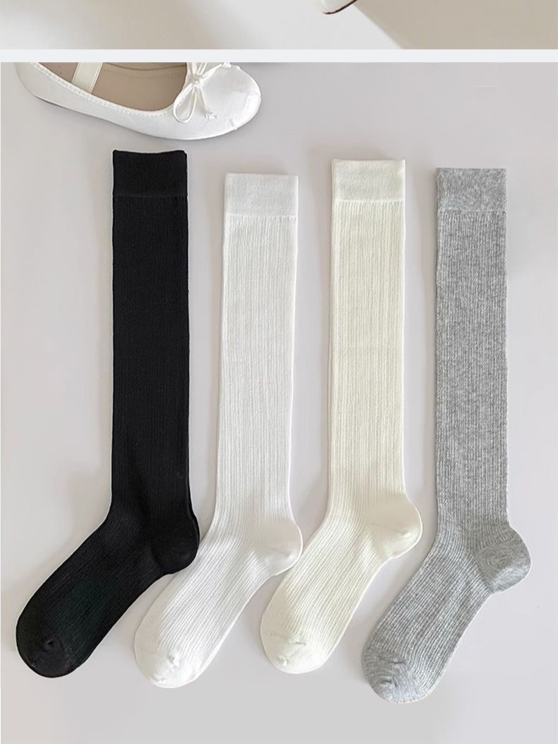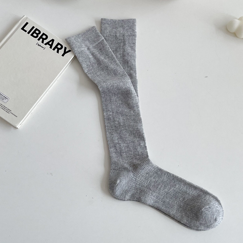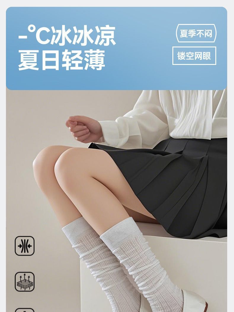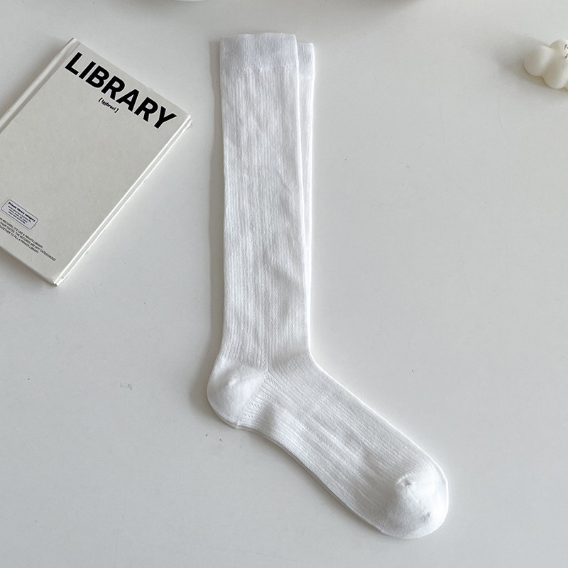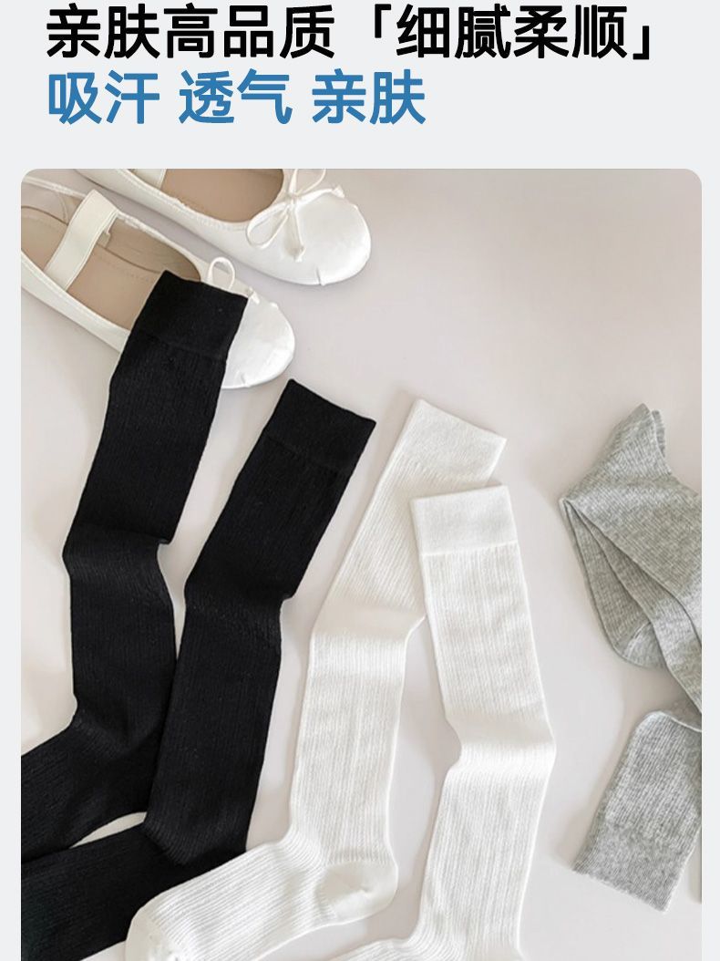뼈없는 양말 유백색 마이크로 압력 jk 무릎 위 양말 봄 여름 얇은 미끄럼 방지 및 낙하 방지 순수한 욕망 스타일 여성용 중간 길이 종아리 양말스토어 가기