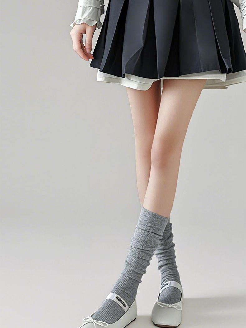 뼈없는 양말 유백색 마이크로 압력 jk 무릎 위 양말 봄 여름 얇은 미끄럼 방지 및 낙하 방지 순수한 욕망 스타일 여성용 중간 길이 종아리 양말