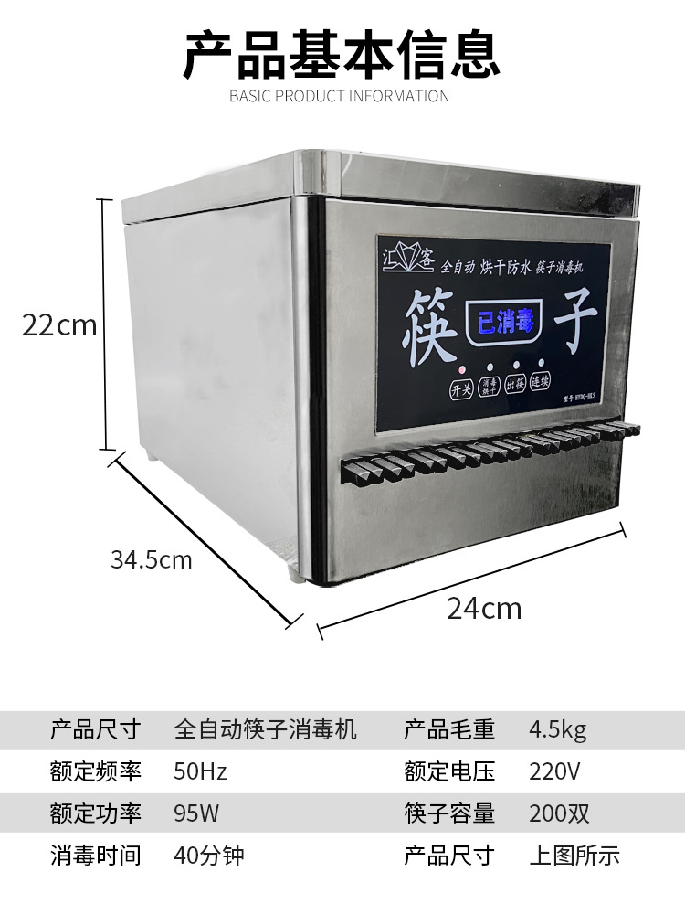 자동 스테인레스 스틸 상업용 소독 젓가락 기계 270 오존 건조 지능형 소독 특수 기계스토어 가기