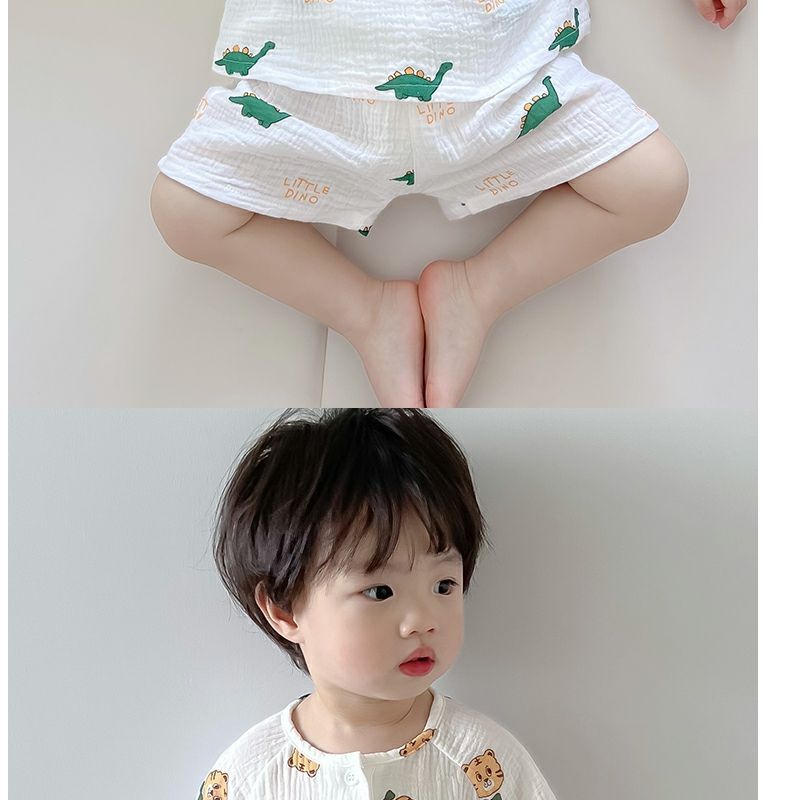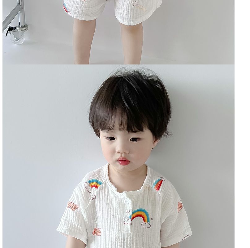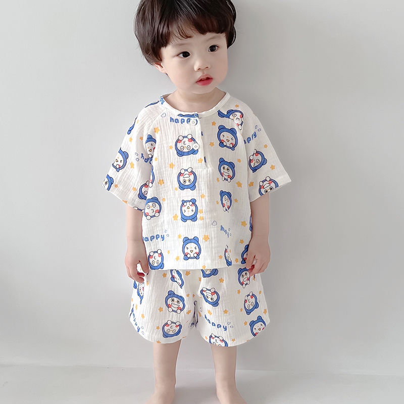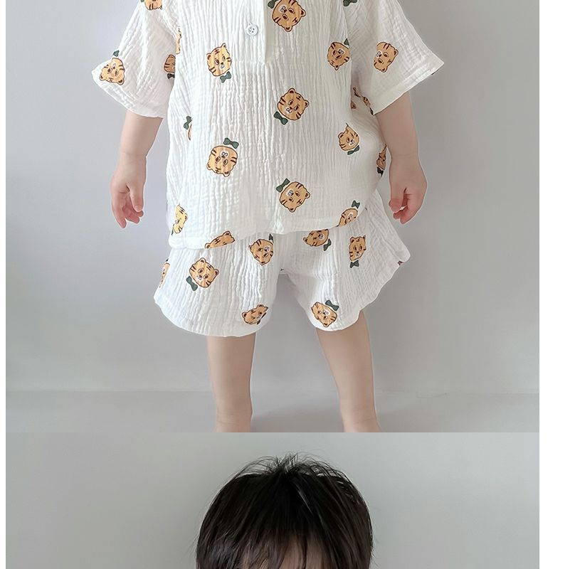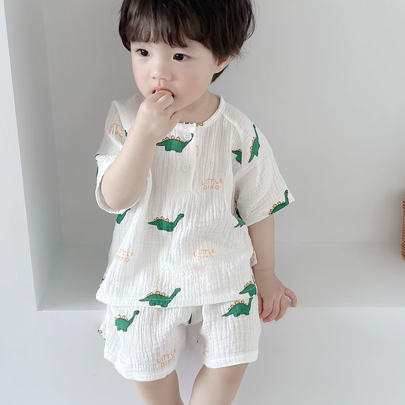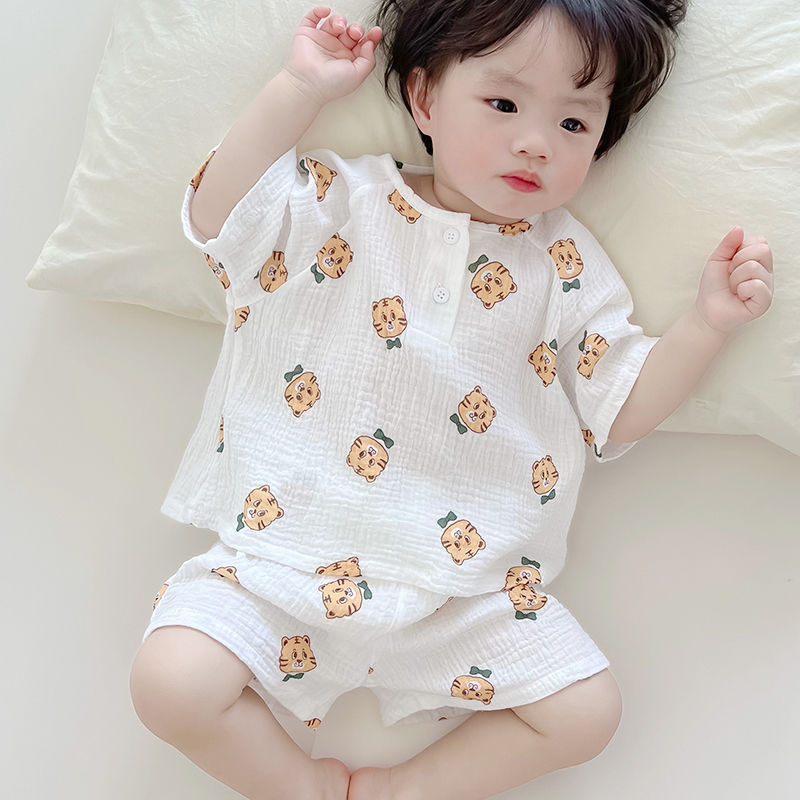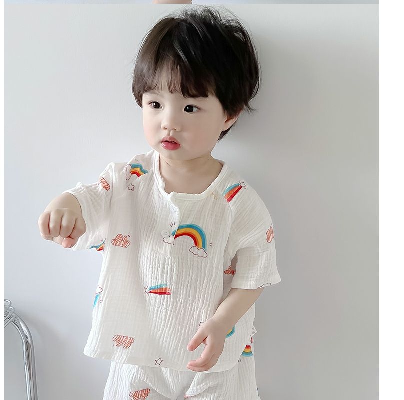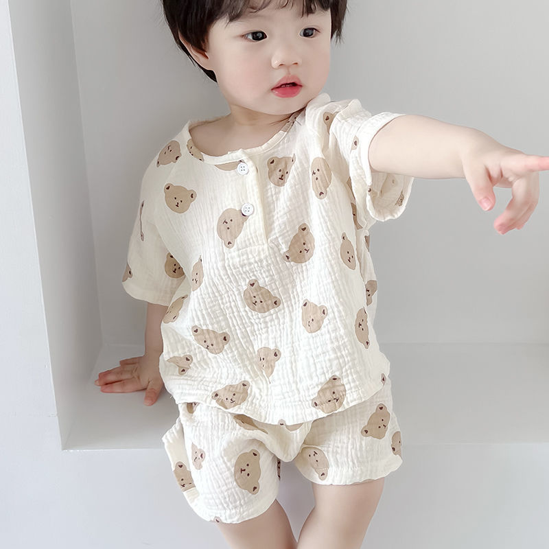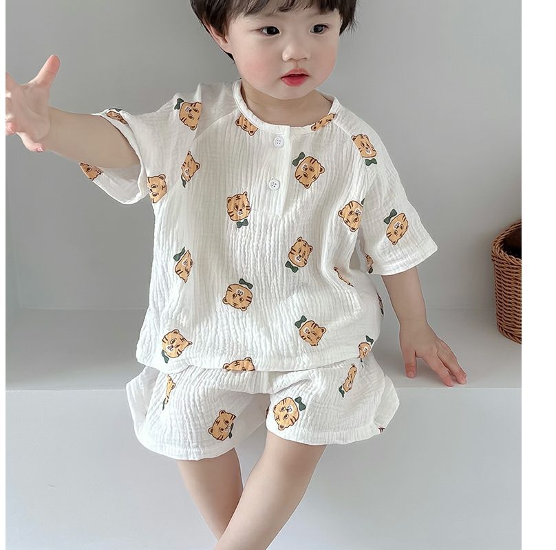 여름 아기 면 거즈 얇은 가정 의류 세트 소년과 소녀 면 거즈 잠옷 어린이 에어컨 의류 인터넷 연예인스토어 가기