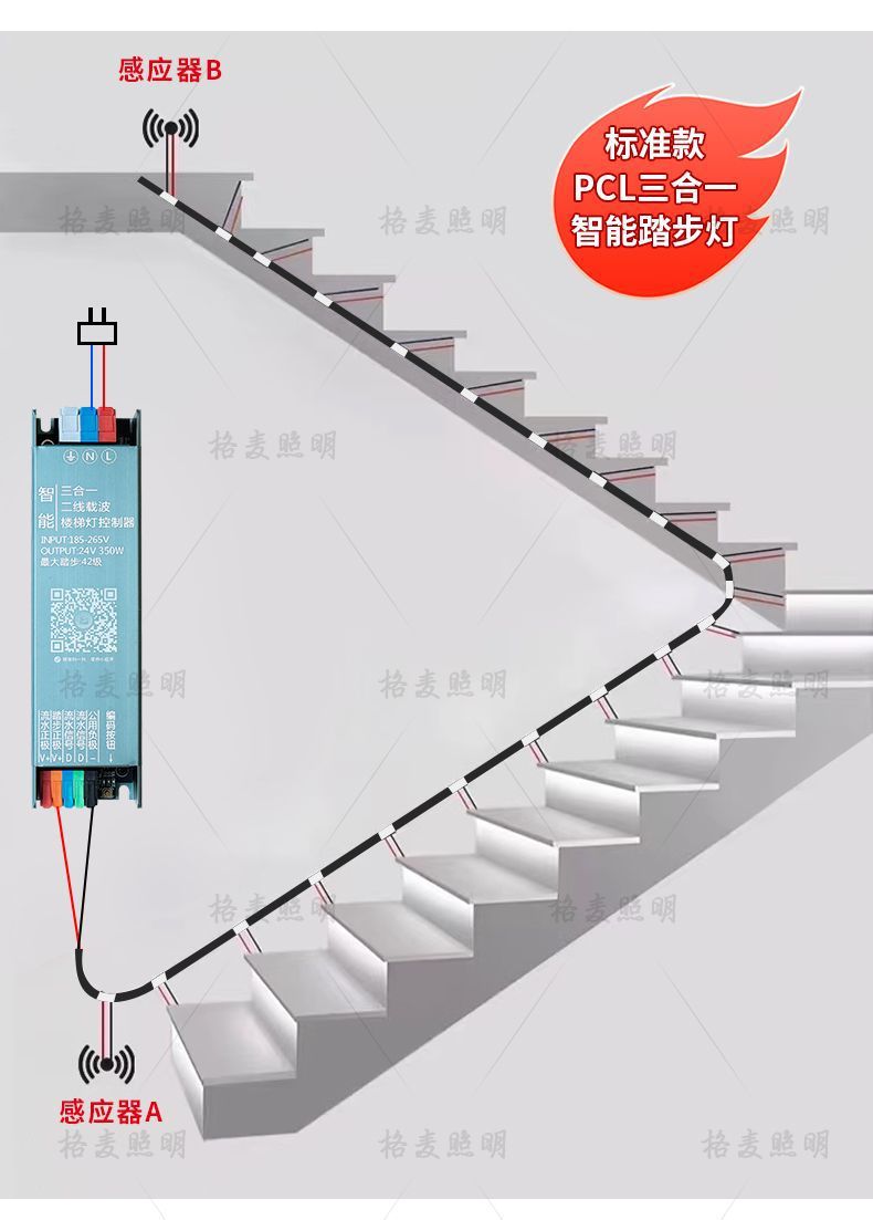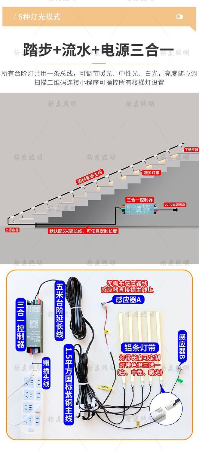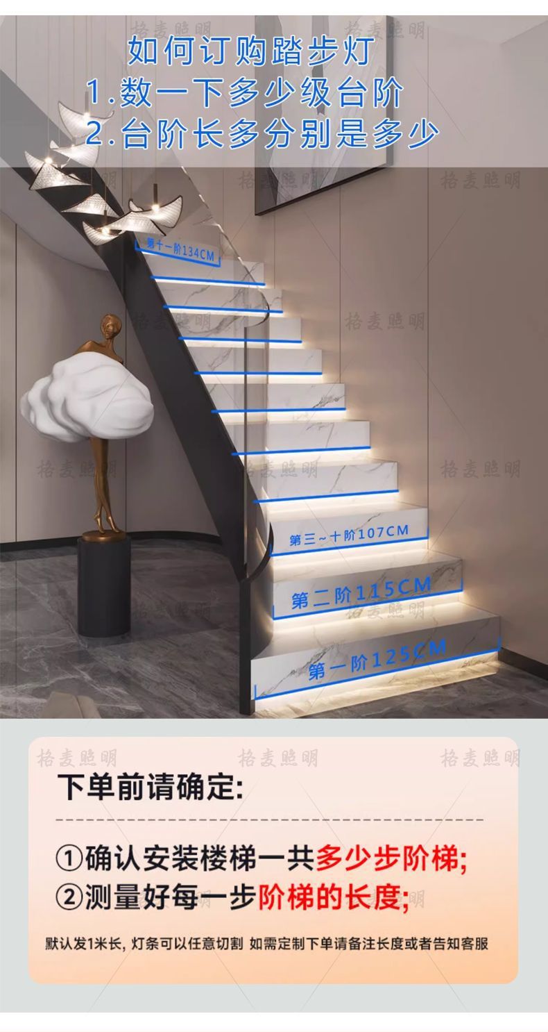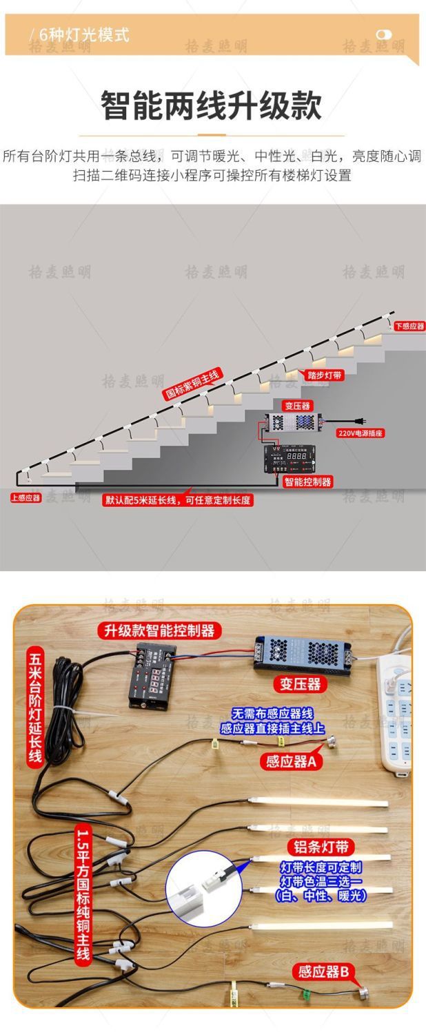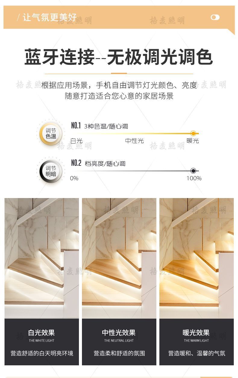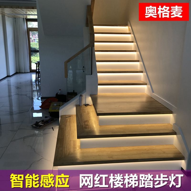 인터넷 연예인 계단 조명 단계 감지 스마트 계단 단계 조명 스트립 LED 추적 조명 경주 물 조명 계단 조명