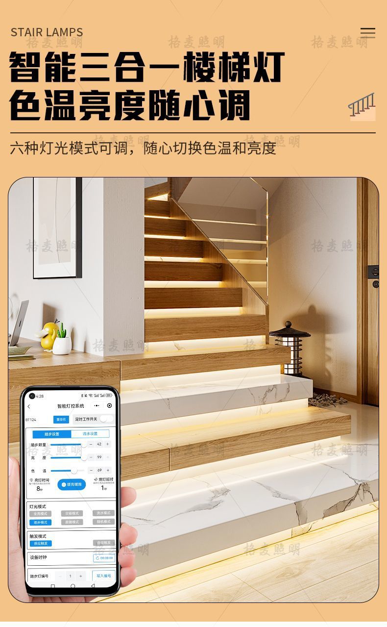 인터넷 연예인 계단 조명 단계 감지 스마트 계단 단계 조명 스트립 LED 추적 조명 경주 물 조명 계단 조명스토어 가기