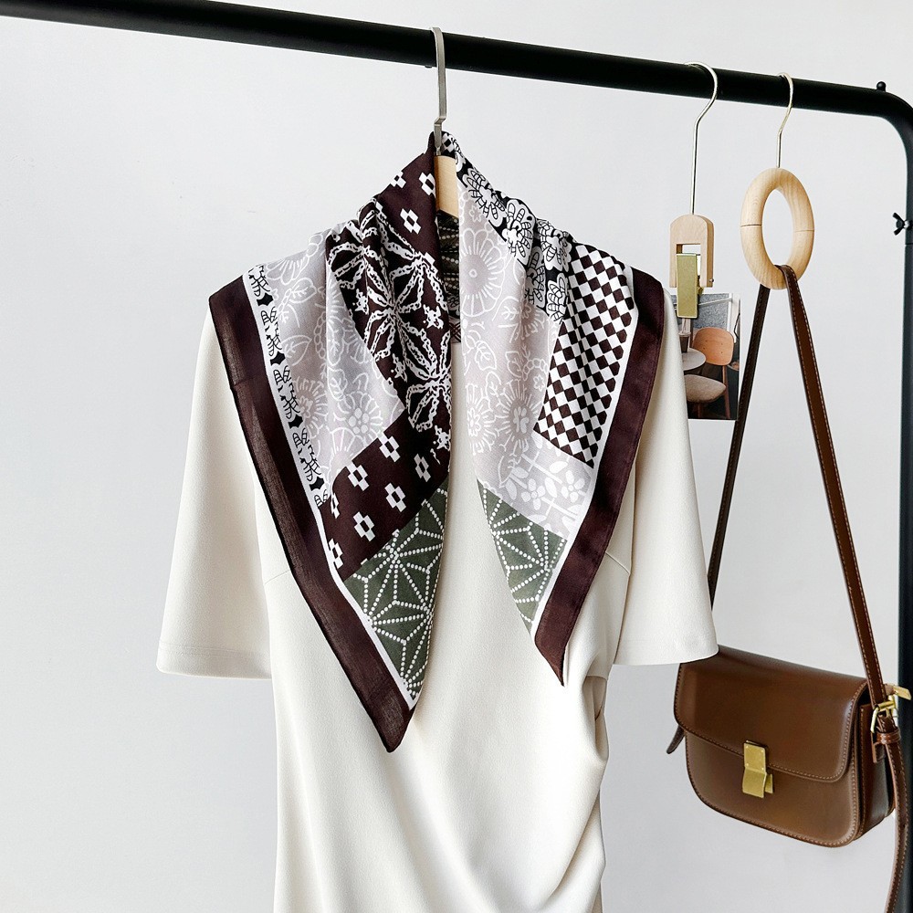 새로운 헤링본 캐슈 실크 스카프, 컬러 블록 스퀘어 스카프, 예술적 복고풍 작은 스퀘어 스카프, 장식용 스카프, 통기성 스카프