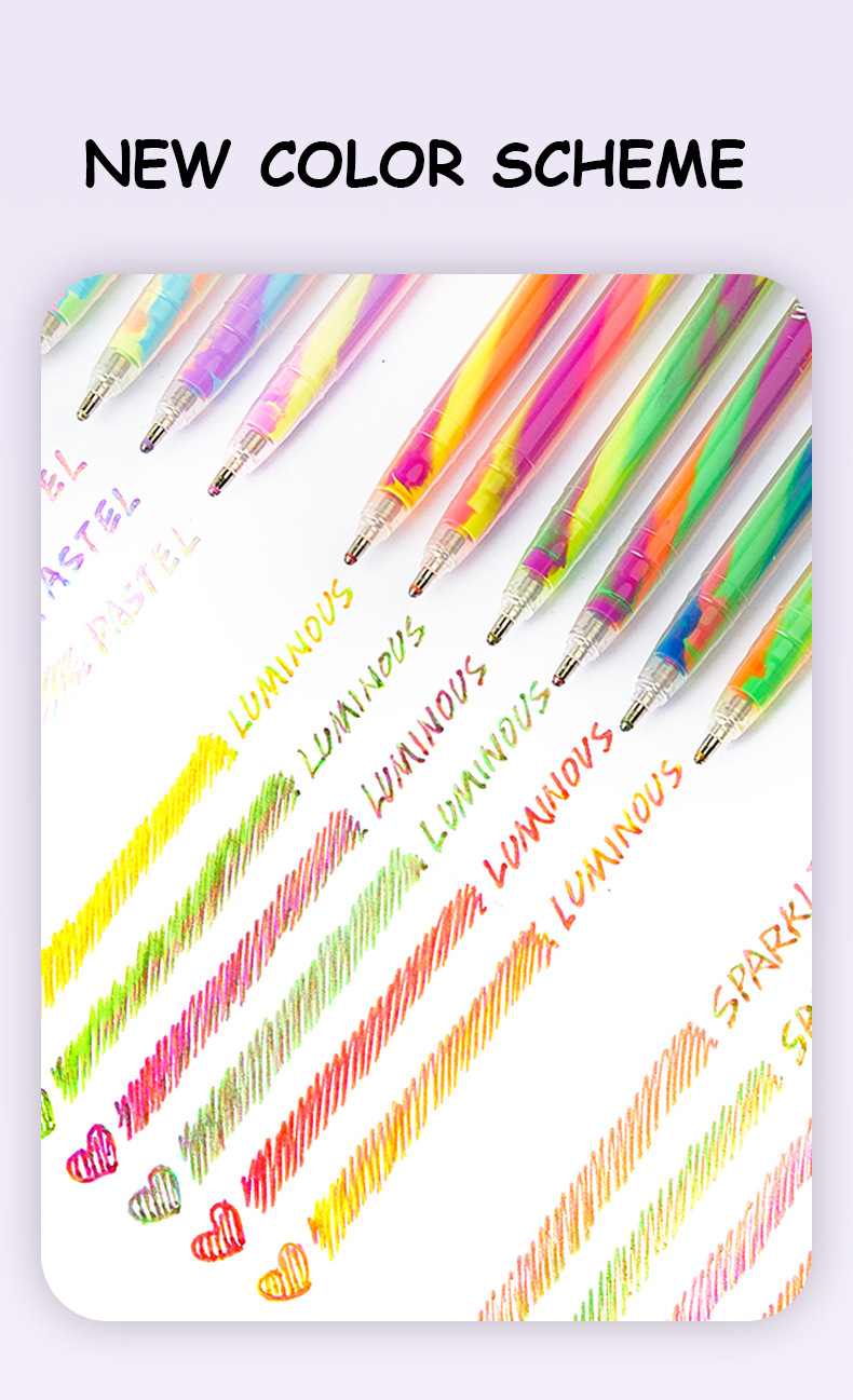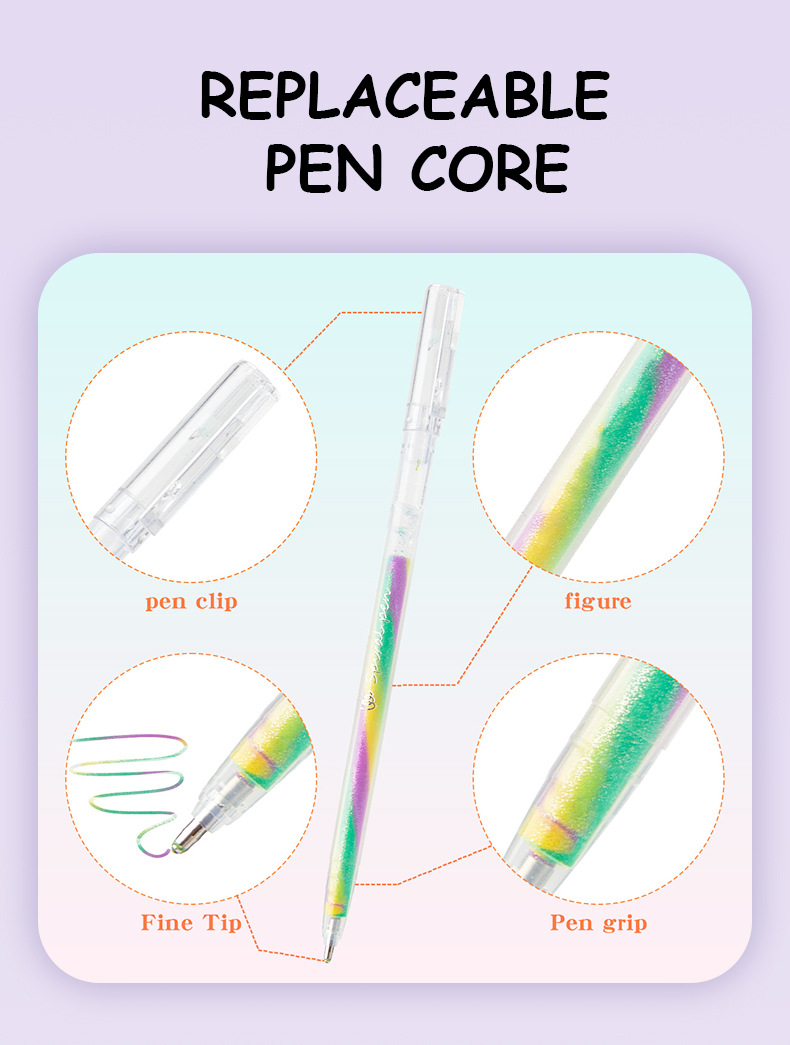 학생을 위한 국경 간 인기 3색 그라데이션 레인보우 펜, 멋진 판타지 나선형 DIY 페인팅 글리터 파스텔 펜 1.2
