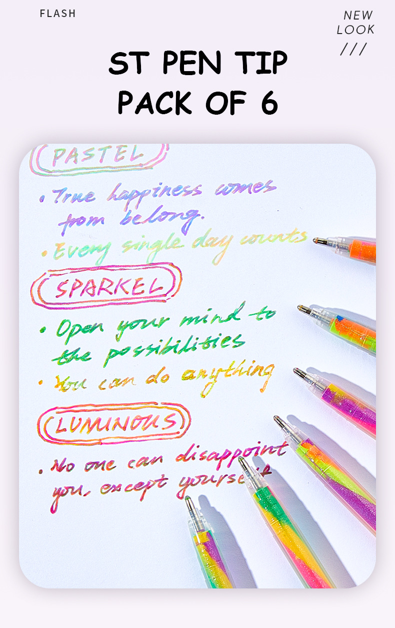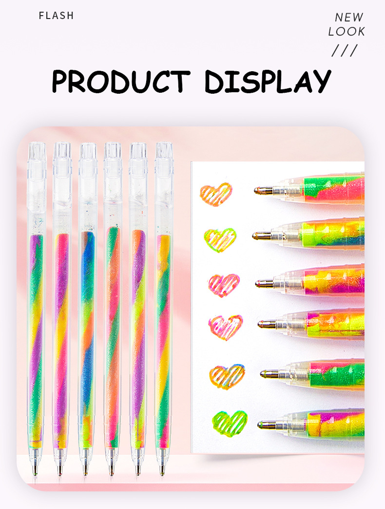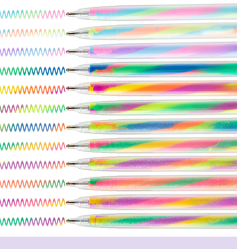 학생을 위한 국경 간 인기 3색 그라데이션 레인보우 펜, 멋진 판타지 나선형 DIY 페인팅 글리터 파스텔 펜 1.2스토어 가기