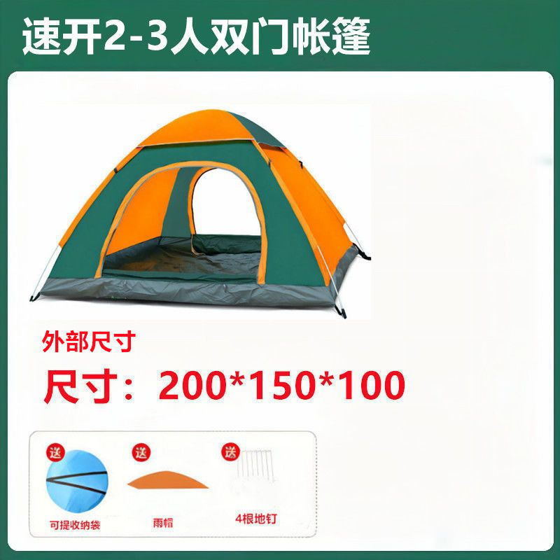 • 2~3인용 빠르게 열리는 짙은 녹색 및 주황색 양문형 텐트