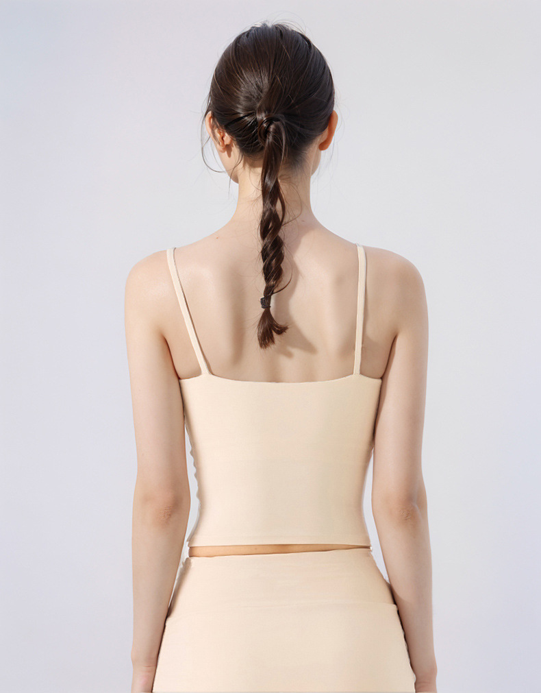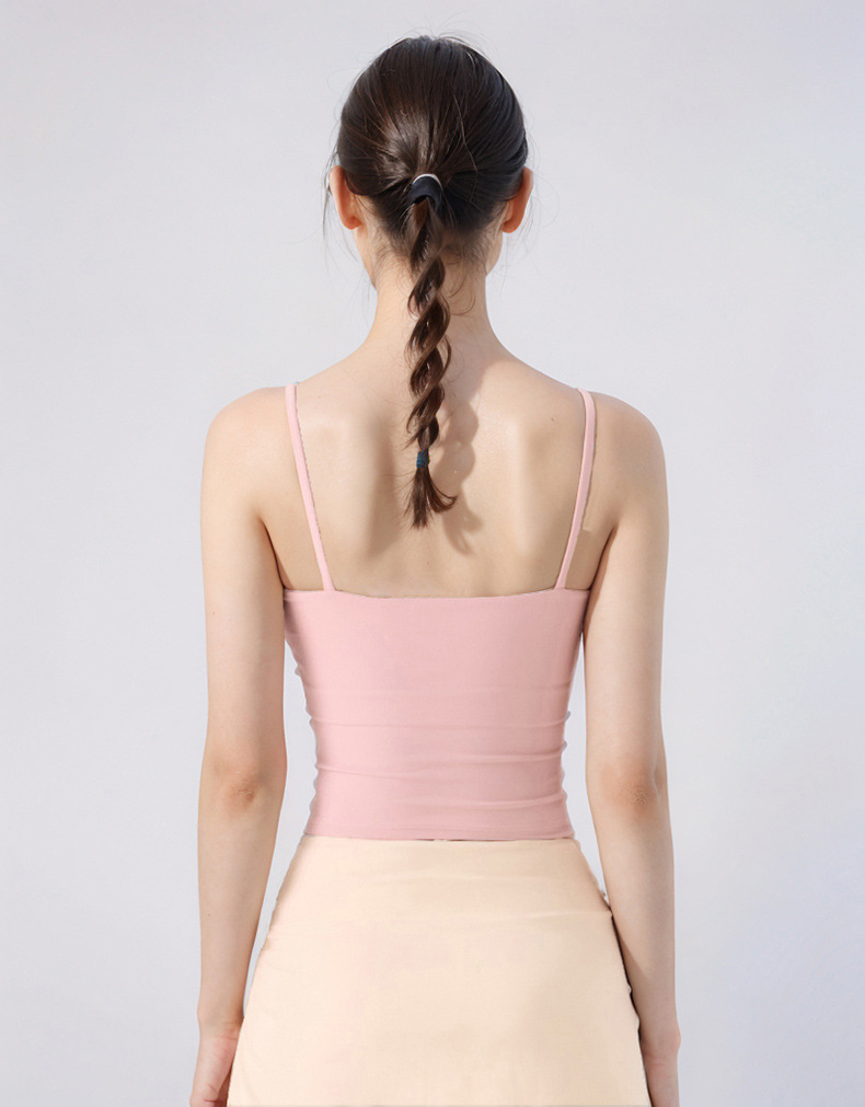 가슴 패드가 있는 보우 메쉬 서스펜더 피트니스 조끼, 요가복, 가볍고 통기성이 뛰어난 스포츠 뷰티 백 필라테스 트레이닝스토어 가기
