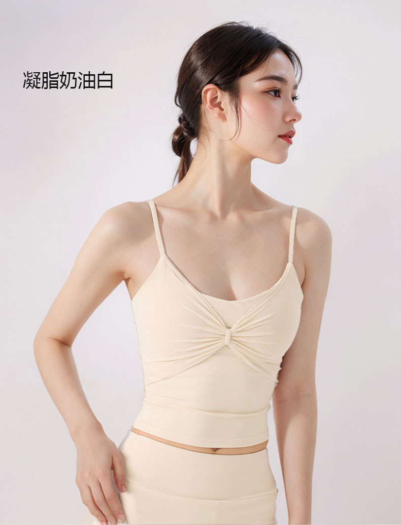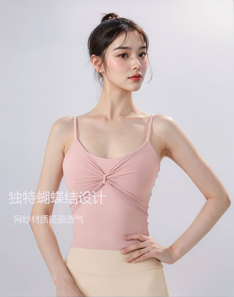가슴 패드가 있는 보우 메쉬 서스펜더 피트니스 조끼, 요가복, 가볍고 통기성이 뛰어난 스포츠 뷰티 백 필라테스 트레이닝