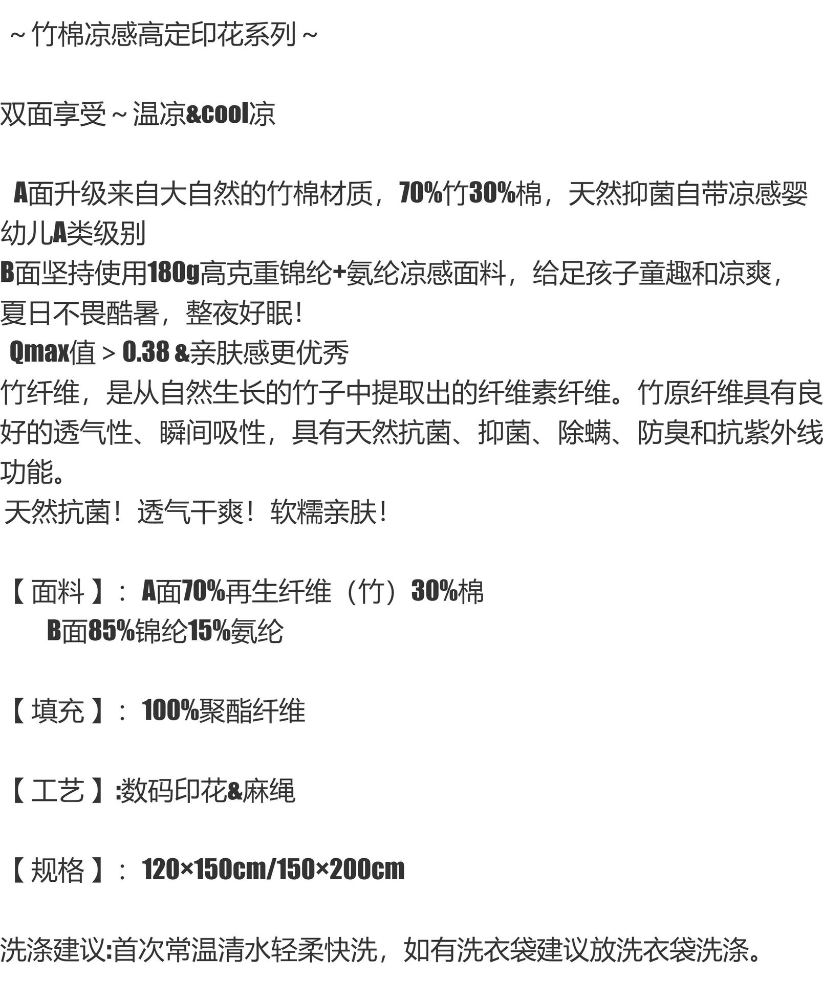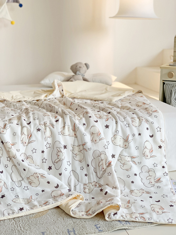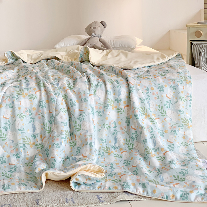 여름 귀여운 트로이 팬더 아기 대나무 면 섬유 여름 시원한 이불 어린이 유치원 시원한 작은 시원한 피부 에어컨 이불