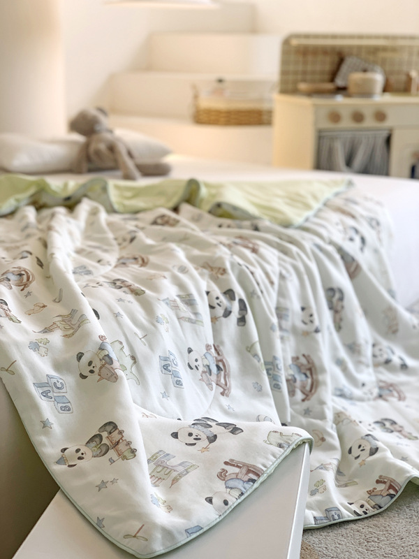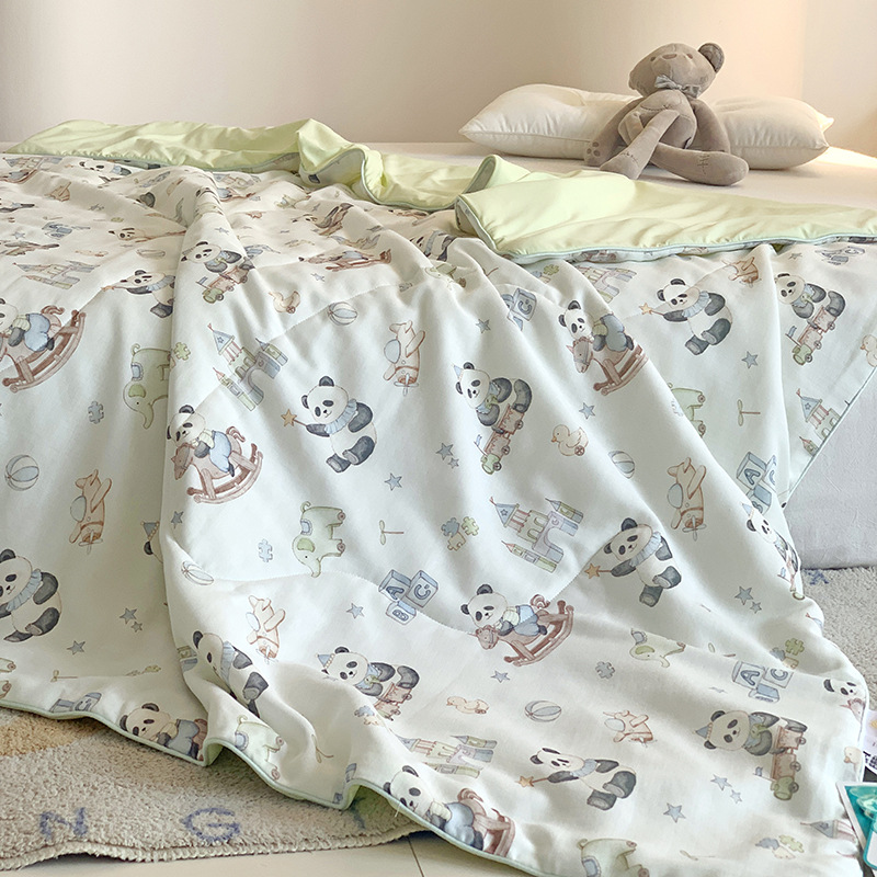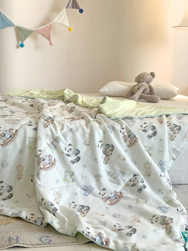 여름 귀여운 트로이 팬더 아기 대나무 면 섬유 여름 시원한 이불 어린이 유치원 시원한 작은 시원한 피부 에어컨 이불스토어 가기