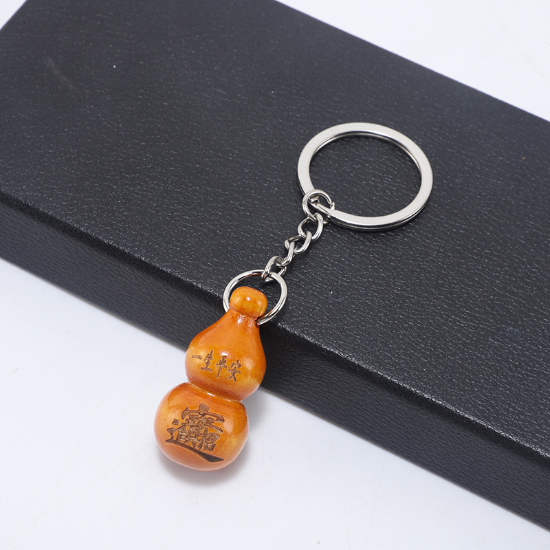 공장 직접 판매 도매 복숭아 나무 조롱박 키 체인 펜던트 키 액세서리 축복 안전 키 체인 작은 선물