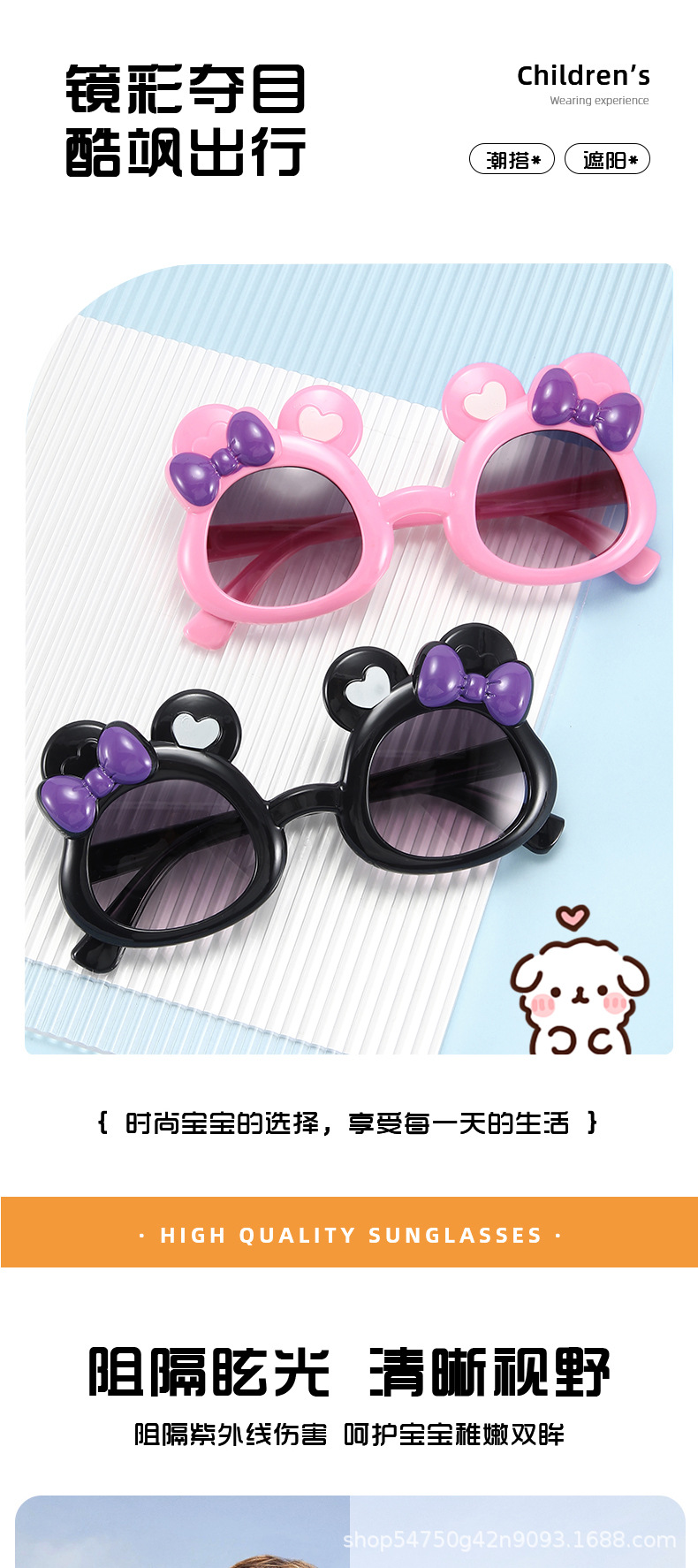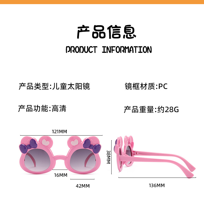 곰돌이 어린이 선글라스, 리본형 만화 캐릭터 자외선 차단 선글라스, 제조사 직공급, 자외선 차단 UV400스토어 가기