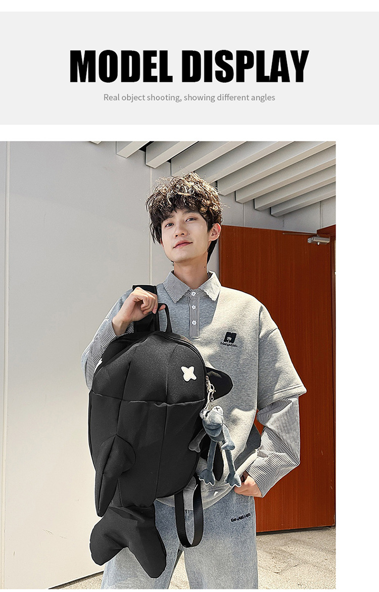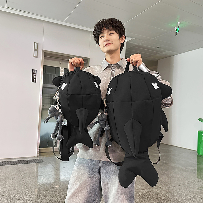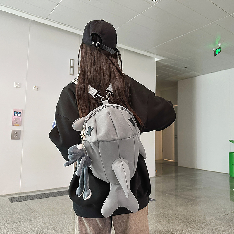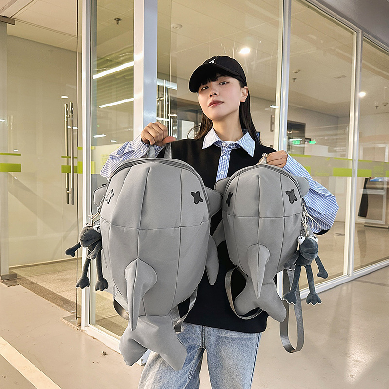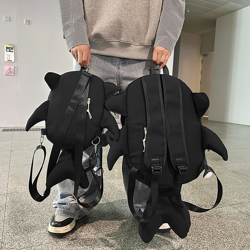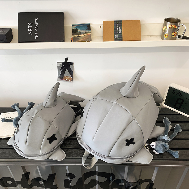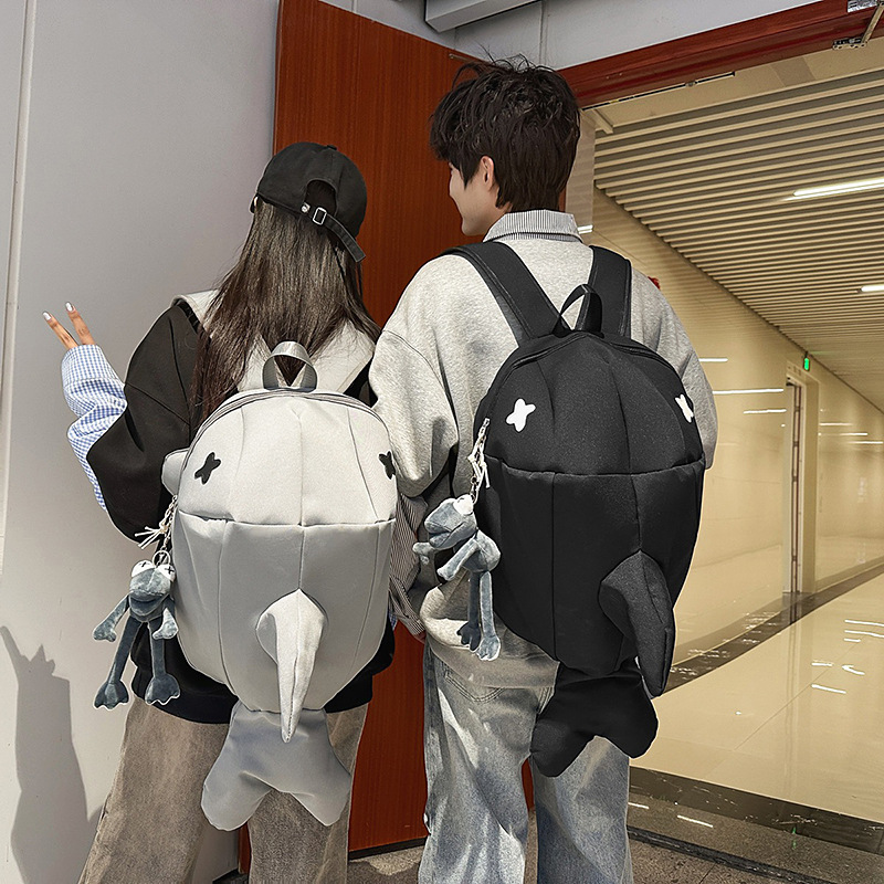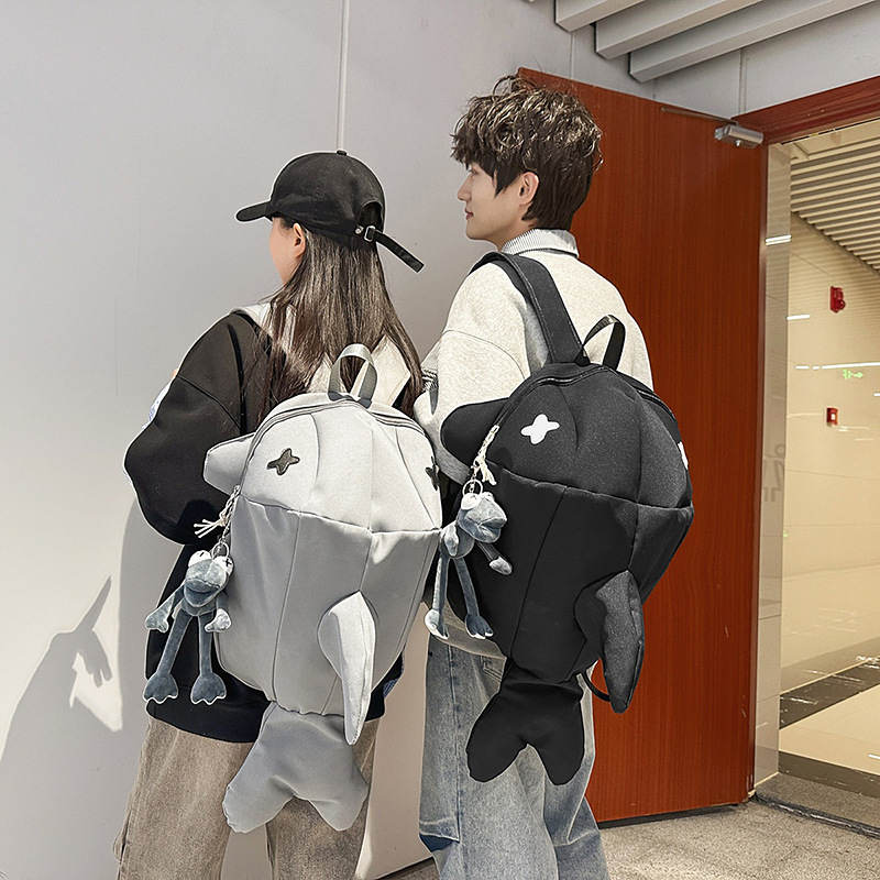 책가방 인스 스타일 독특한 만화 남녀공용 상어 대용량 백팩 재미있는 트렌디 백팩 남성용 백팩