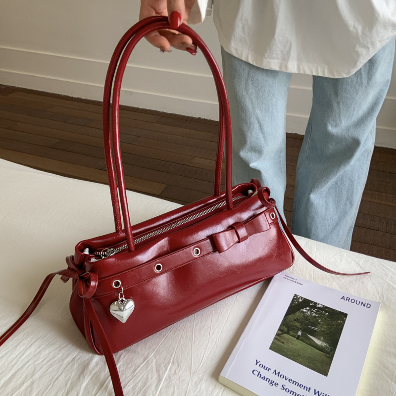 크로스보더 니치 디자인 닥스훈트 모터사이클 백, 달콤하고 시크한 레트로 벨트 버클 바게트 백, 패셔너블하고 다재다능한 숄더/언더암 백스토어 가기