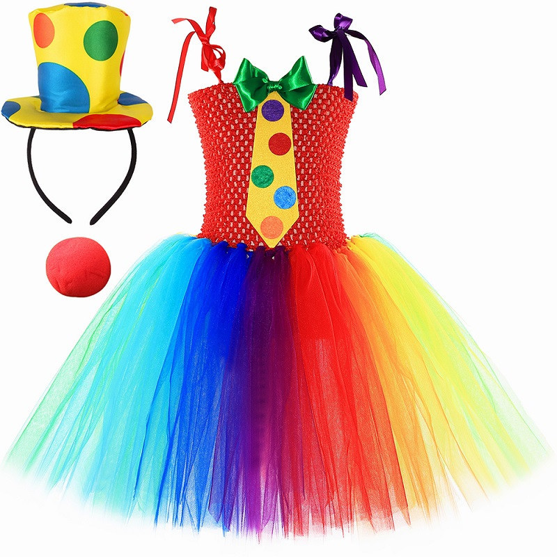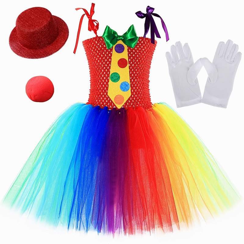 국경 간 새로운 무지개 서커스 광대 코스프레 투투 스커트 할로윈 어린이 공연 의상 소녀 거즈 스커트스토어 가기