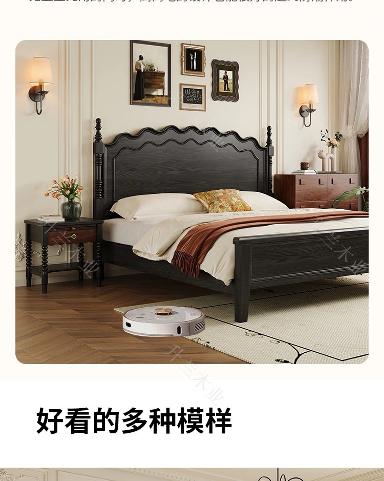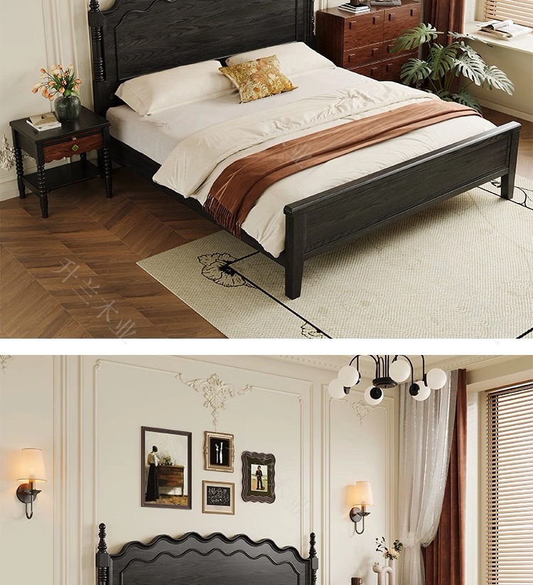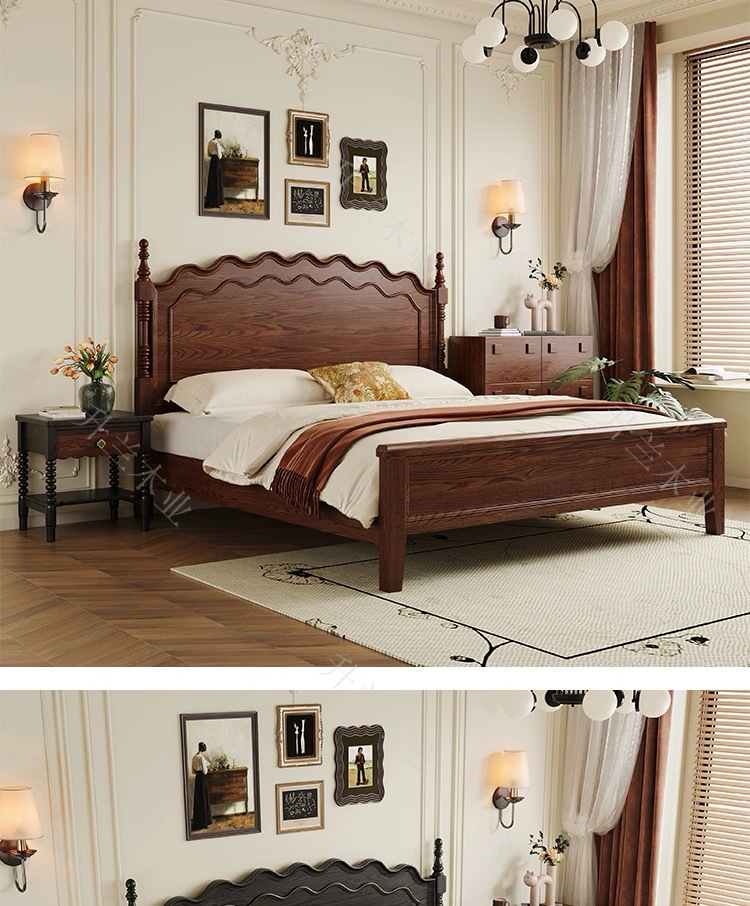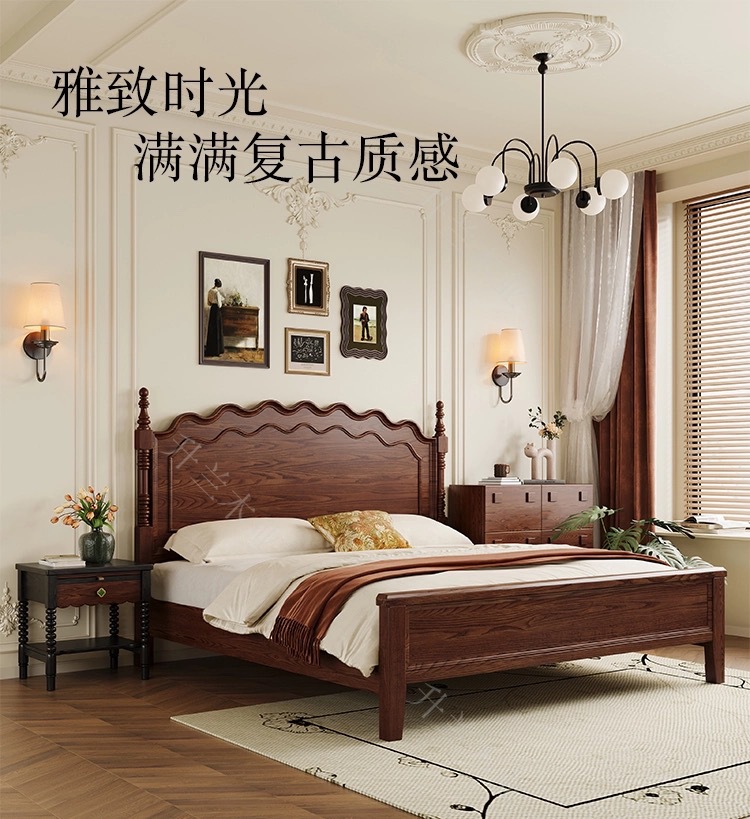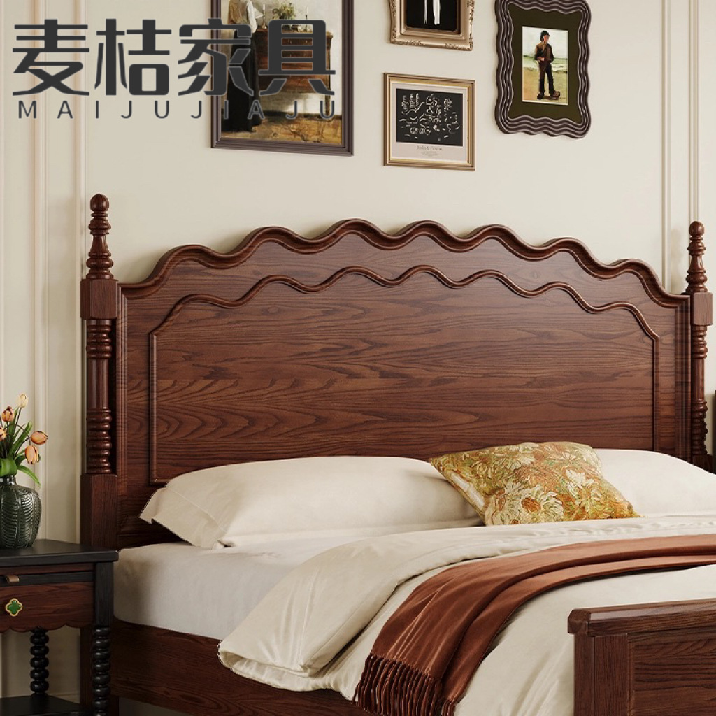 중세 스타일 애쉬 원목 침대 현대적인 간단한 웨이브 더블 침대 복고풍 프렌치 침대 마스터 침실 1.8m 라이트 럭셔리 침대