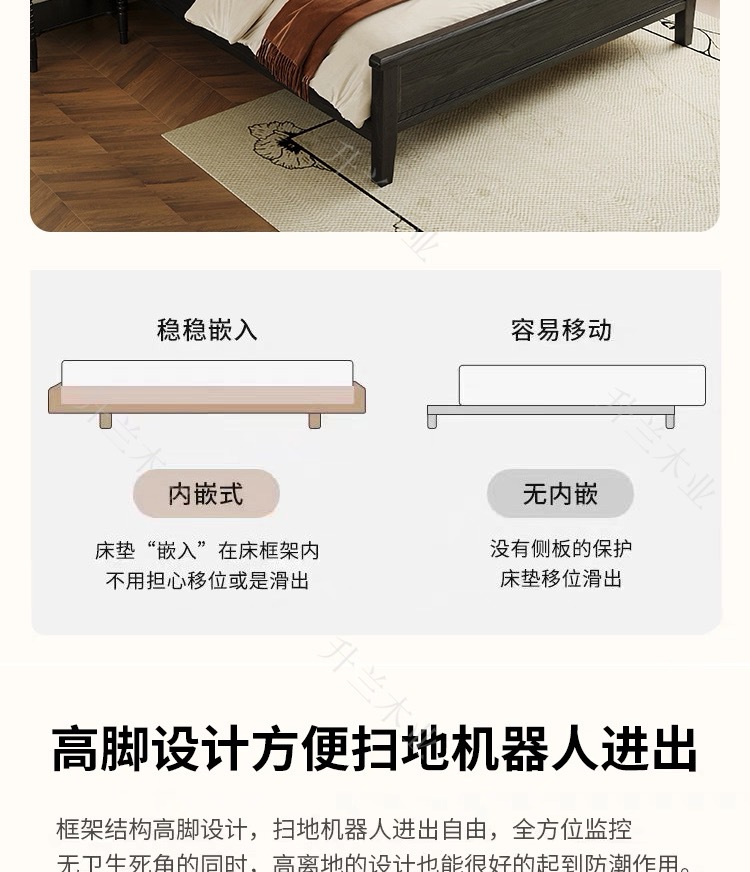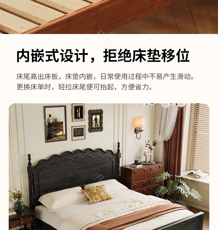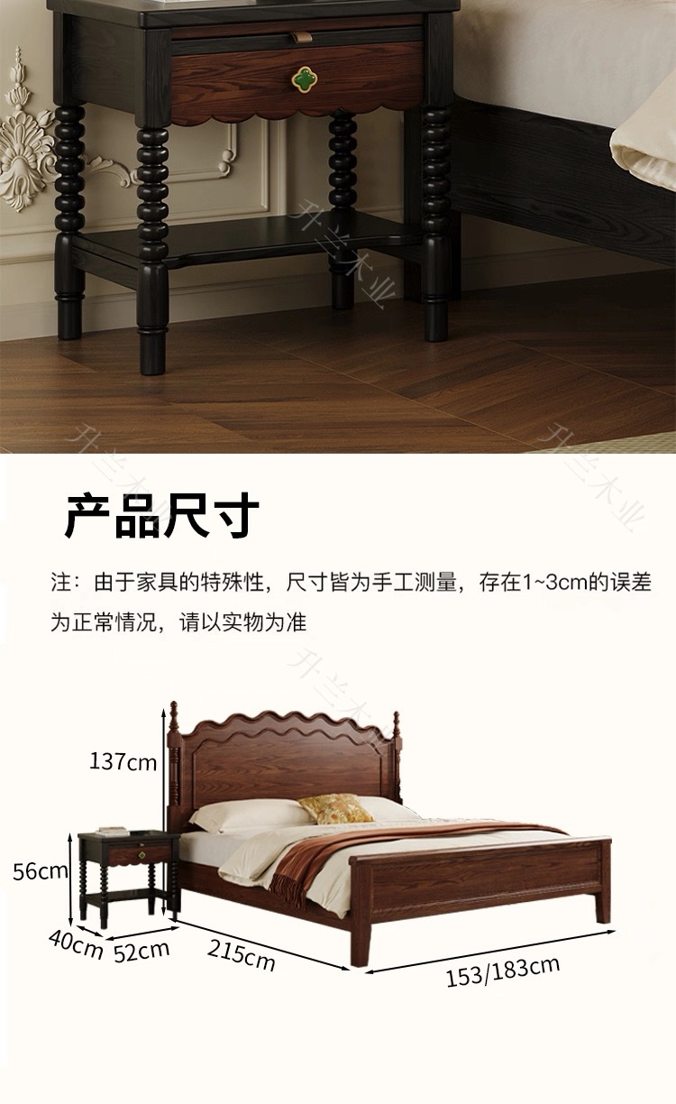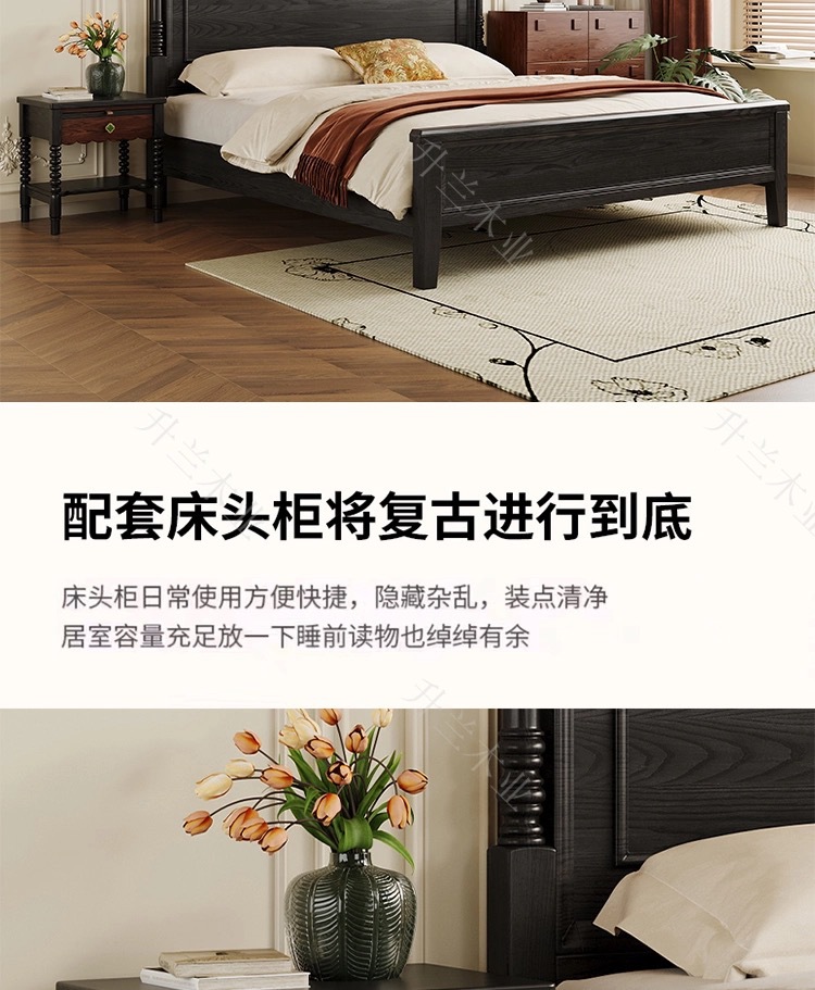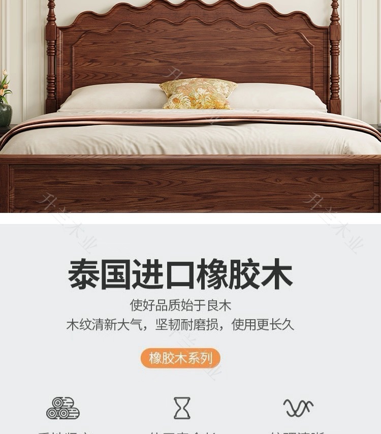 중세 스타일 애쉬 원목 침대 현대적인 간단한 웨이브 더블 침대 복고풍 프렌치 침대 마스터 침실 1.8m 라이트 럭셔리 침대